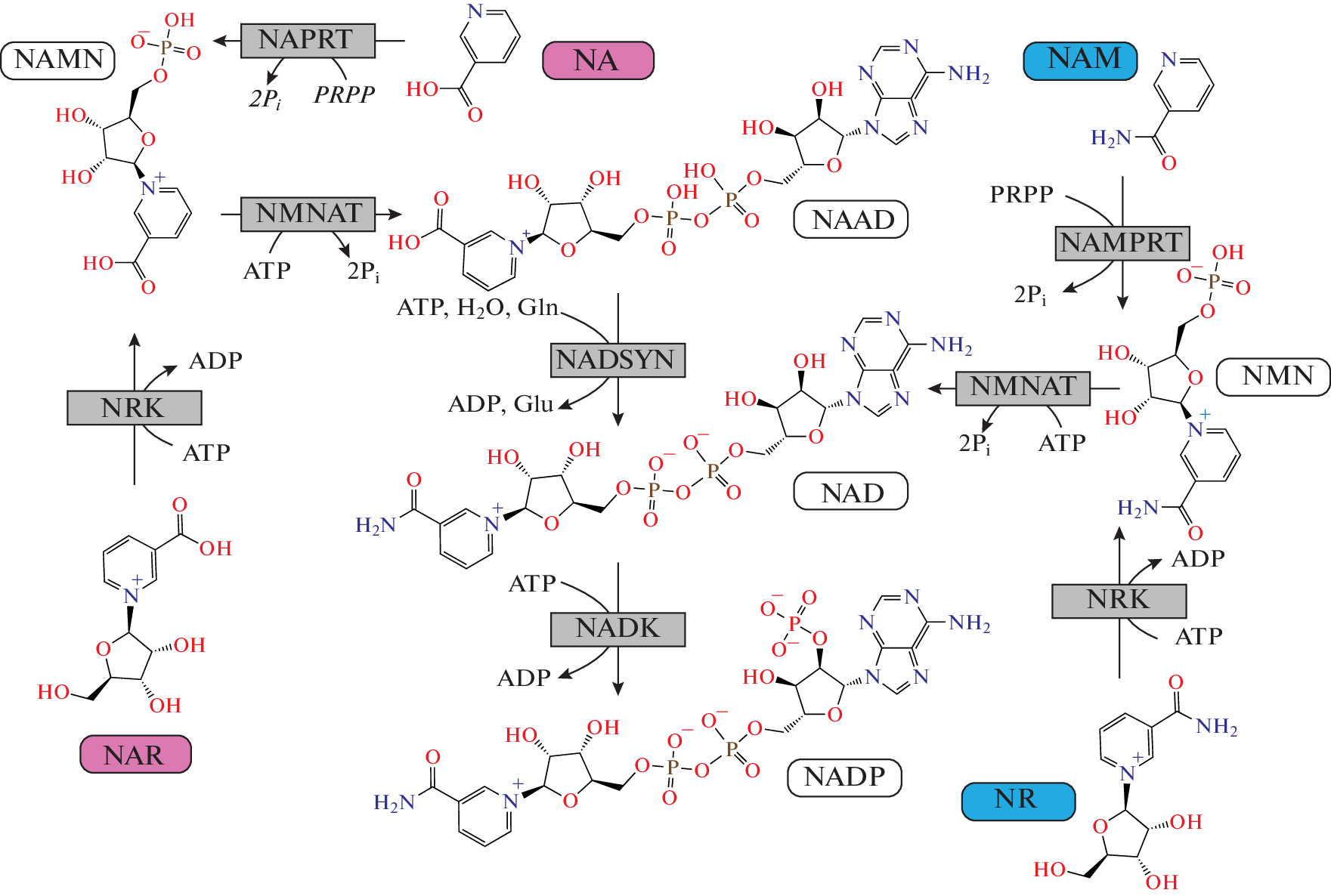 - Liu L., Su X., Quinn W.J., 3rd, Hui S., Krukenberg K., Frederick D.W., Redpath P., Zhan L., Chellappa K., White E., Migaud M., Mitchison T.J., Baur J.A., Rabinowitz J.D. 2018. Quantitative Analysis of NAD synthesis-breakdown fluxes. Cell Metab. V. 27. P. 1067.
