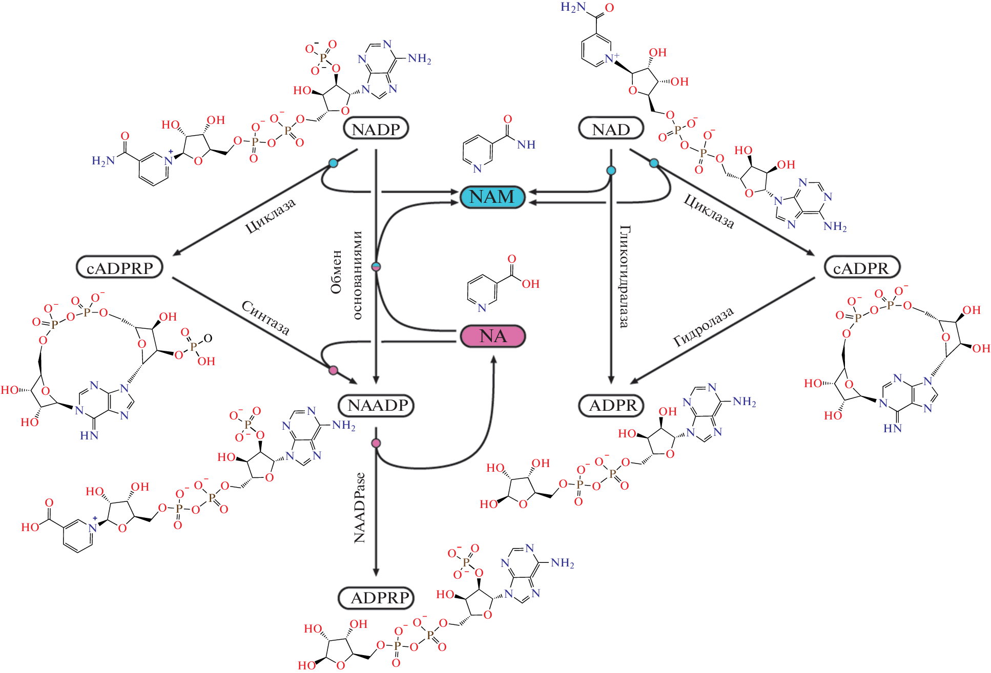 - Moreschi I., Bruzzone S., Melone L., De Flora A., Zocchi E. 2006. NAADP+ synthesis from cADPRP and nicotinic acid by ADP-ribosyl cyclases. Biochem. Biophys. Res. Commun. V. 345. P. 573.