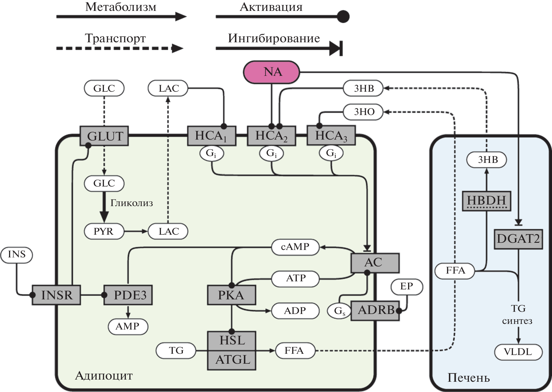 - Liu C., Wu J., Zhu J., Kuei C., Yu J., Shelton J., Sutton S.W., Li X., Yun S.J., Mirzadegan T., Mazur C., Kamme F., Lovenberg T.W. 2009. Lactate inhibits lipolysis in fat cells through activation of an orphan G-protein-coupled receptor, GPR81. J. Biol. Chem. V. 284. P. 2811.