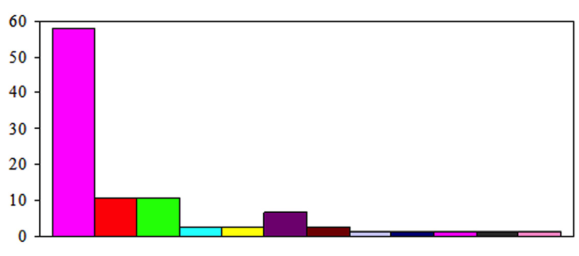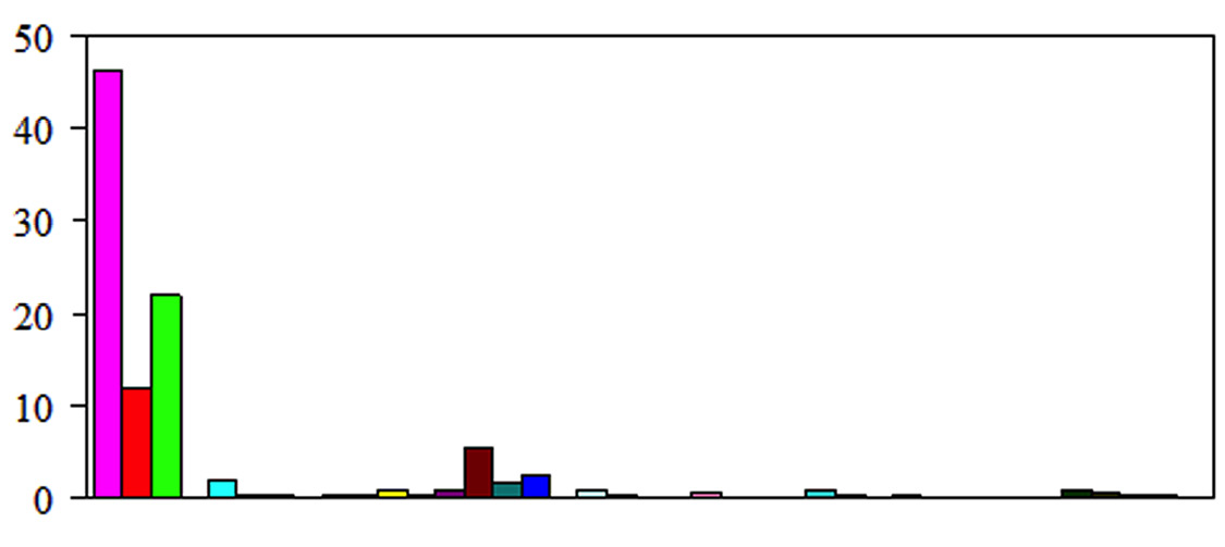 В %% | 18.5 | 20 | 24.5 | 12.6 | 14.8 | 3 | 2.2 | 3 | 0.7 | 0.7 |