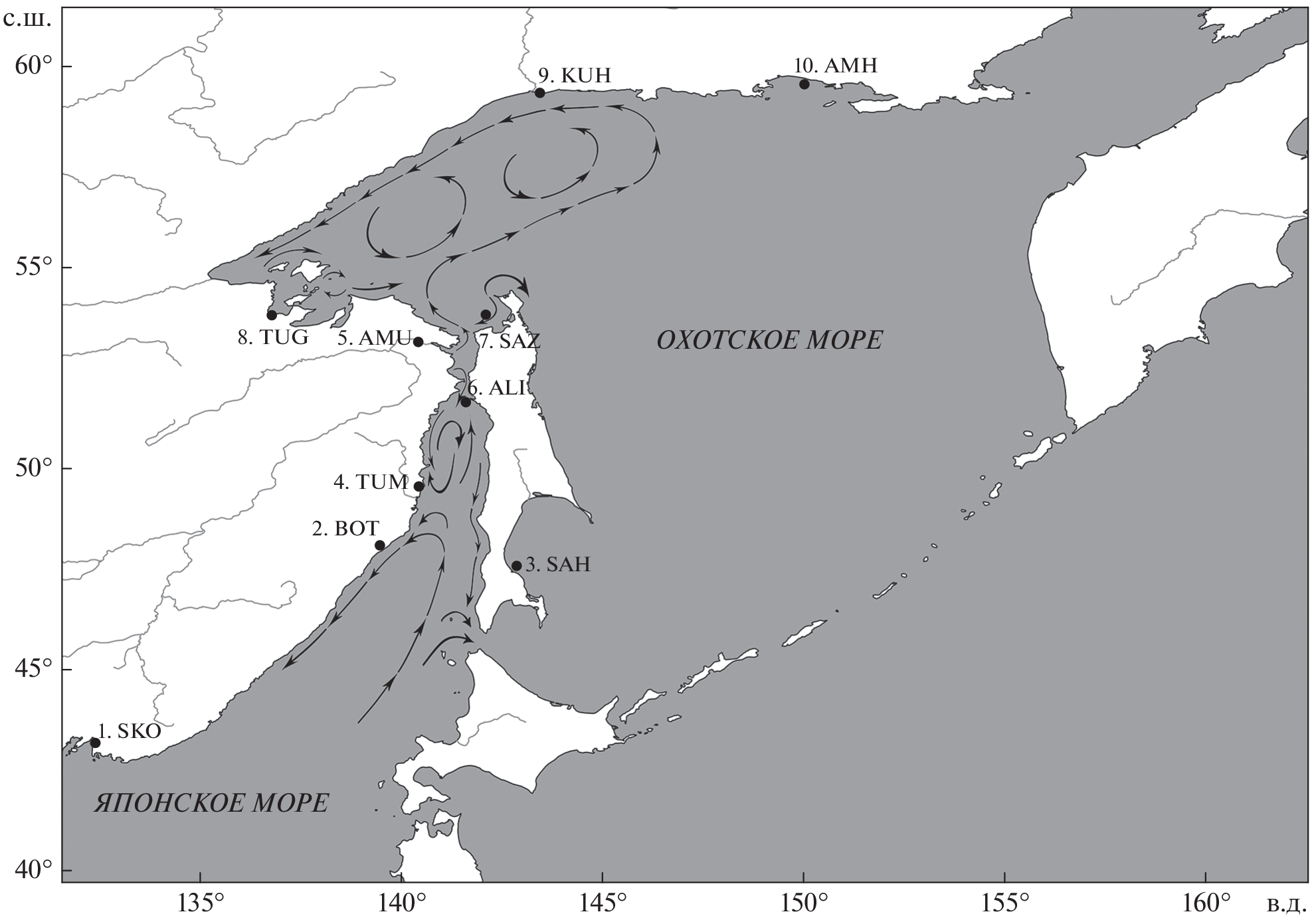 - Андреев А.Г. 2018. Особенности циркуляции вод в южной части Татарского пролива // Исслед. Земли из космоса. № 1. С. 3–11. https://doi.org/10.7868/S0205961418010013