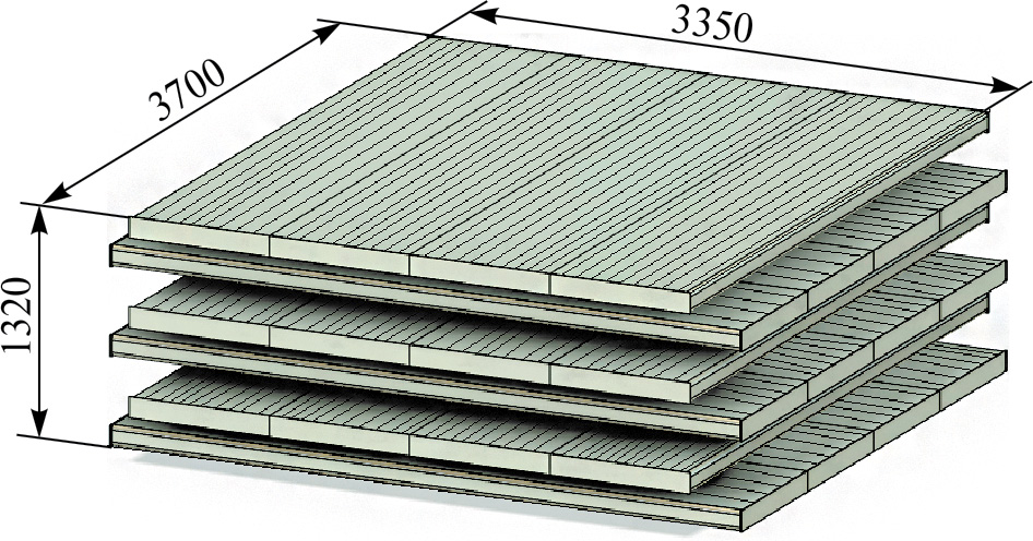 Целью настоящей работы является разработка и создание мюонного годоскопа с чувствительной областью 10 м2, выполненного из ДТ диаметром 52 мм и длиной 3.7 м, расположенных в 12 плоскостях ДТ (6 + 6 плоскостей с ортогональной ориентацией трубок), способного работать в бестриггерном режиме [4] длительное время без обновления рабочего газа, оснащенного специализированной накамерной электроникой. Эскиз и размеры годоскопа приведены на рис. 1.