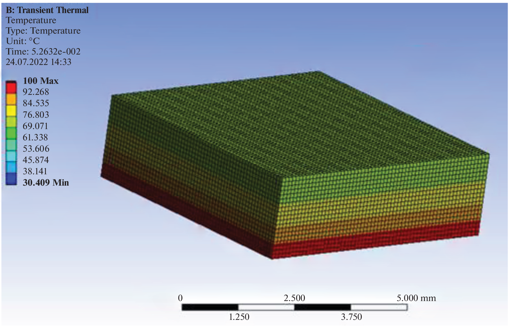 A study was made of a thermal interface based on a two-dimensional allotropic modification of carbon (graphene), presented in the form of a powder, for cooling integrated circuits. Such physical properties of the thermal interface as thermal conductivity, heat capacity, thermal diffusivity, and density are determined by the empirical method. The process of heat transfer in the most efficient thermal interface sample during the operation of integrated circuits in the ANSYS engineering analysis system is presented. The prospects of using pressed graphene powder as a thermal interface in order to eliminate the use of a binder are described. The paper also makes a comparison with the most effective type of thermal interfaces currently in use.