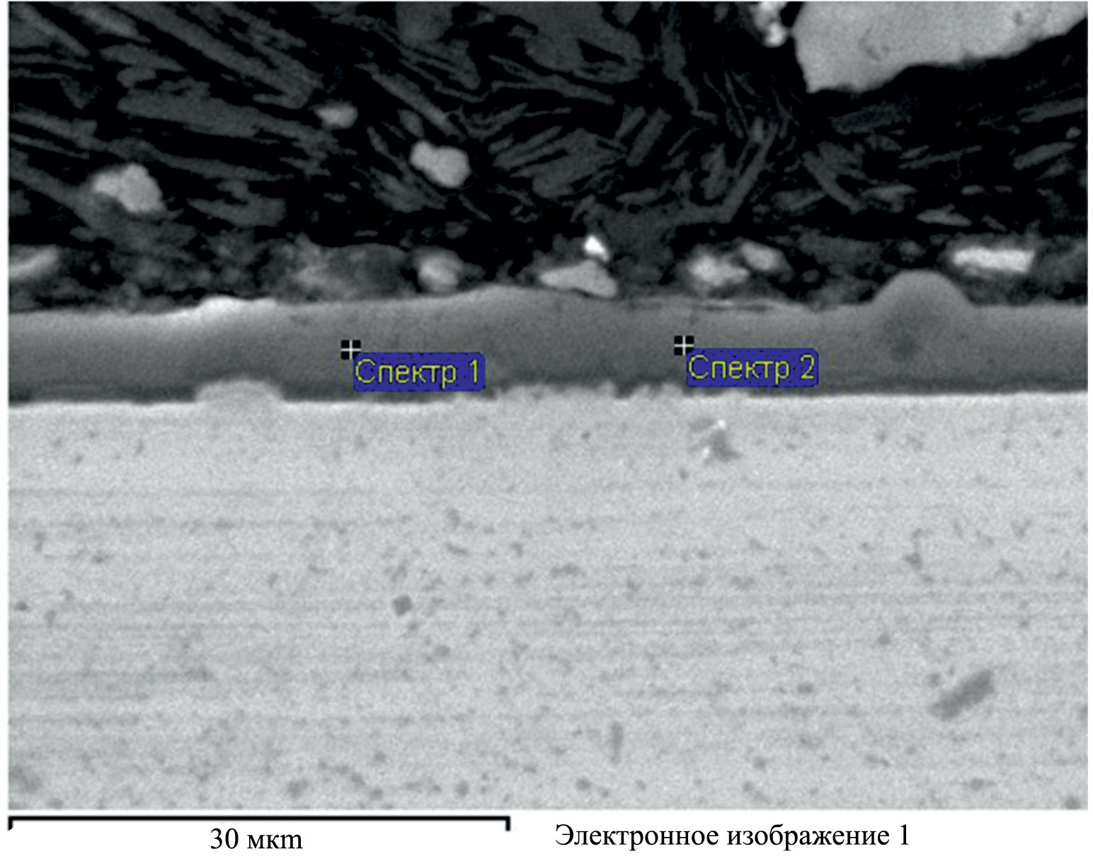 Качественный анализ образцов показал (рис. 3, табл. 1), что весовые доли кислорода в покрытии колеблются в пределах 26.72–31.10; алюминия – в пределах 67.54–72.39; железа – 0.71–1.42. Все результаты показаны в весовых долях.