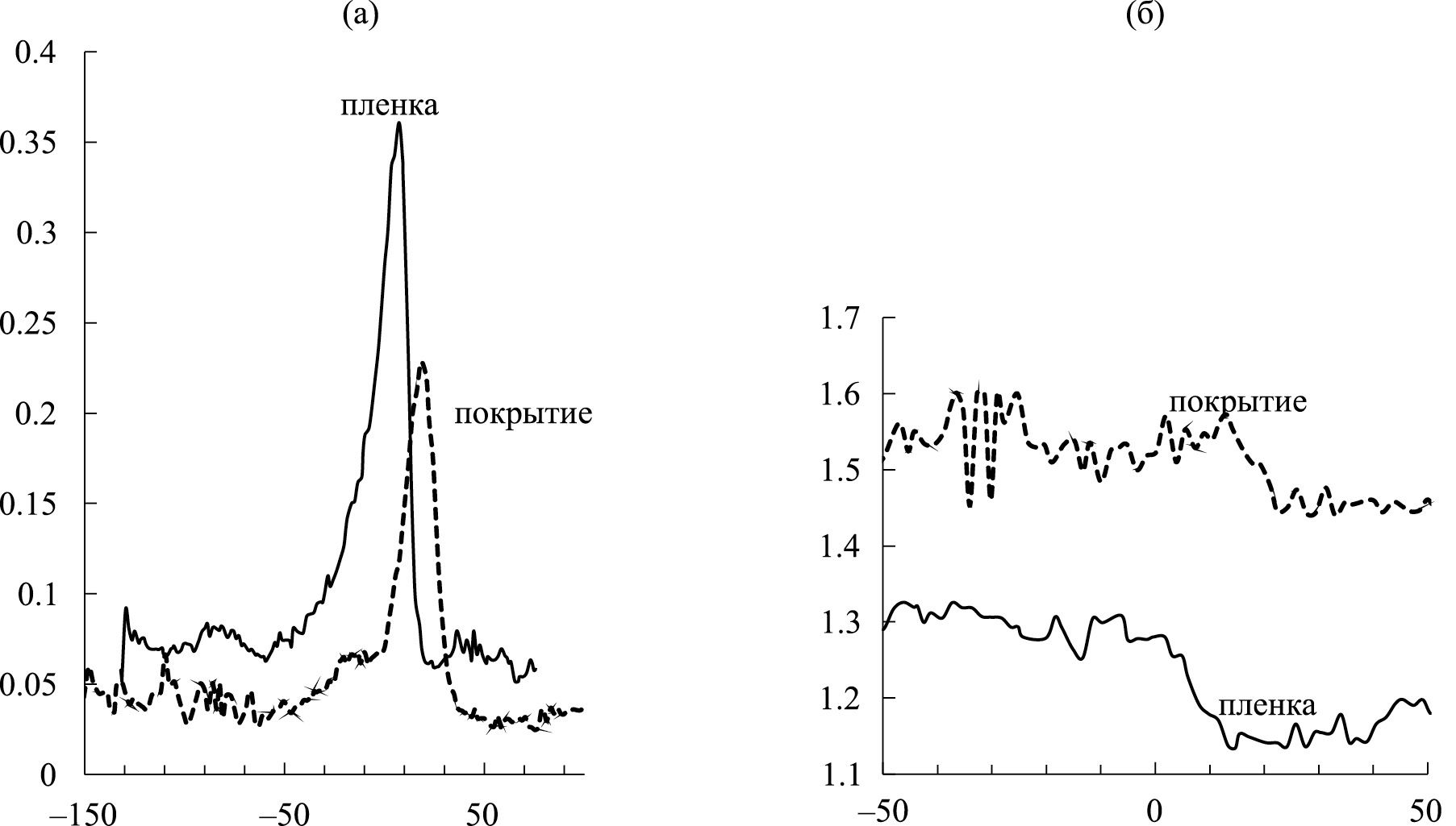 Здесь следует отметить: при сравнении интенсивности α-релаксации полимерной пленки и покрытия обнаруживается ее снижение в последнем случае. При сопоставлении интенсивности α-релаксации модифицированной пленки и покрытия происходит значительное снижение интенсивности диссипативного процесса в полимере, локализованном на медной подложке. Это может означать то, что эффект нарушения релаксационной структуры с введением фталоцианинатого модификатора в состав полимерного покрытия, который мог бы способствовать росту подвижности макроцепей (как это имеет место в случае свободной пленки), нивелируется адгезией полимера к металлической поверхности. Этот факт требует дальнейшего более детального изучения.
