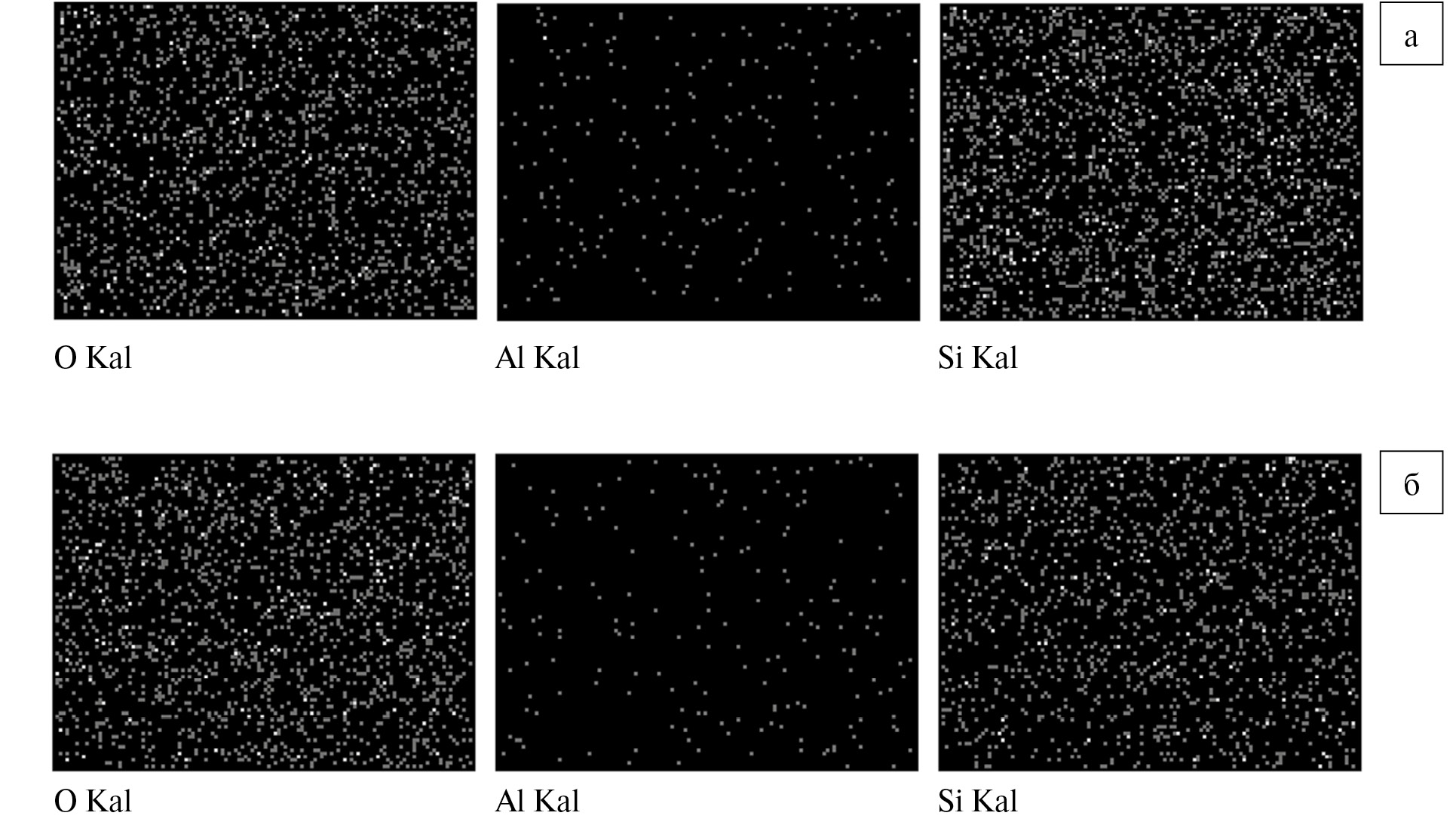 Морфологические исследования методом СЭМ в характеристическом излучении кислорода, алюминия и кремния показали их равномерное распределение по поверхности адсорбентов (рис. 2).