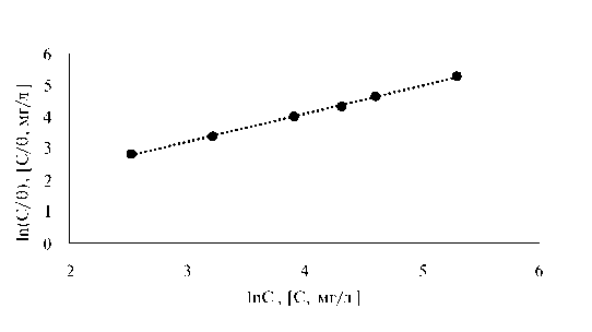 Рис. 10. Линеаризация данных адсорбции АТД в координатах модели Редлиха–Петерсона