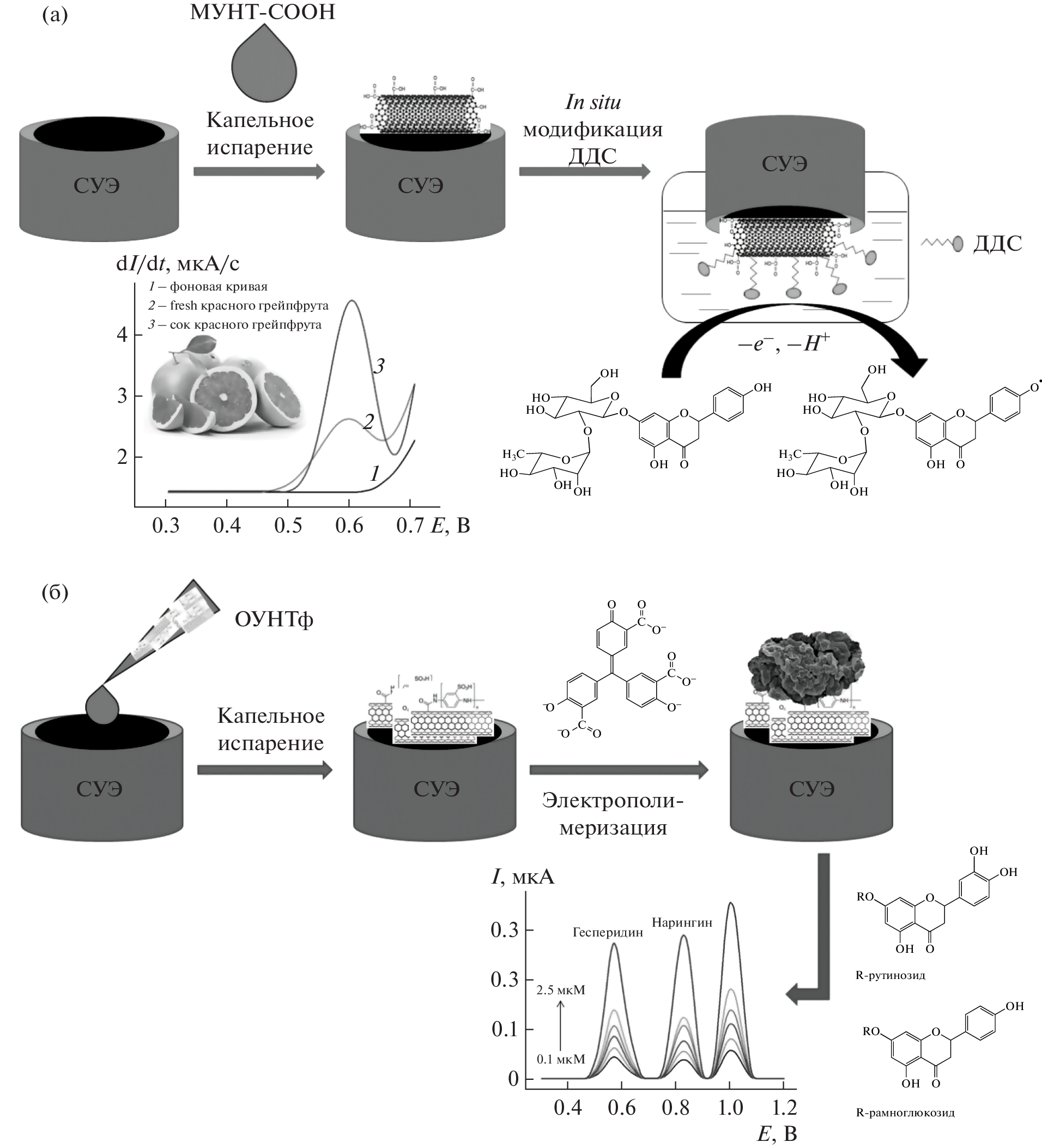 - Wang W., Gao J., Wang L., Ye B. Electrochemical behavior of naringenin and its sensitive determination based on a single-walled carbon nanotube modified electrode // Anal. Methods. 2015. V. 7. № 20. P. 8847. https://doi.org/10.1039/C5AY01782C