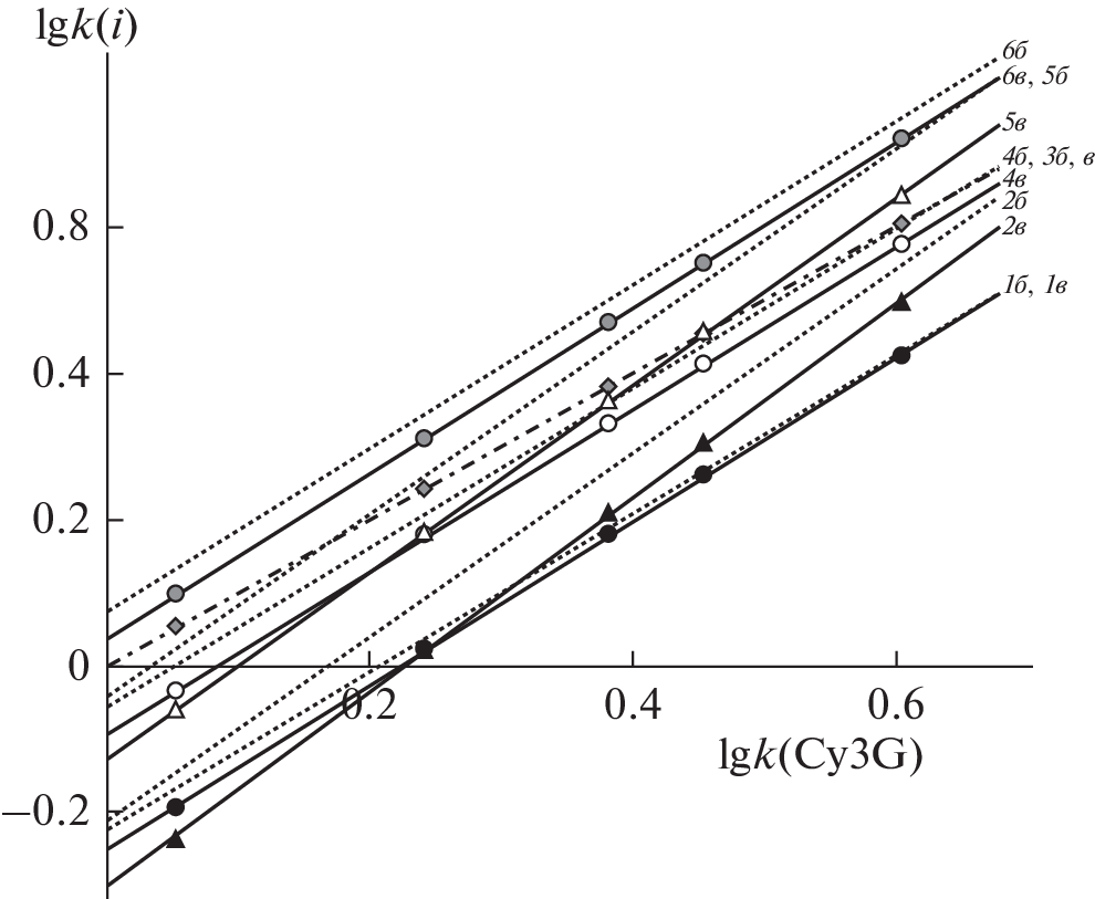 Экспериментально установлено, что замена ацетонитрила на этанол при подкислении подвижной фазы ортофосфорной кислотой является эффективным вариантом замены ацетонитрила. При этом порядок элюирования однотипных гликозидов пяти основных антоцианидинов (дельфинидина, цианидина, петунидина, пеонидина и мальвидина) не изменяется в удобных для анализа элюентах, а диапазон времен удерживания полного набора таких антоцианов заметно сокращается при переходе от ацетонитрила к этанолу. Для определения влияния строения гликозидного радикала на удерживание производных одного и того же антоцианидина (цианидина) использовали смесь шести гликозидов – одного моногликозида (3-глюкозида), двух 3-дигликозидов (софорозида и самбубиозида) и двух 3‑тригликозидов (2"-глюкозилрутинозида и 2"-ксилозилрутинозида). Эта смесь представляет собой реально встречающийся набор антоцианов, требующих тщательного подбора подвижной фазы для разделения всех компонентов. В работе на основе анализа карт разделения определен состав подвижной фазы на основе этанола, позволяющий добиться эффективного разделения этих антоцианов.