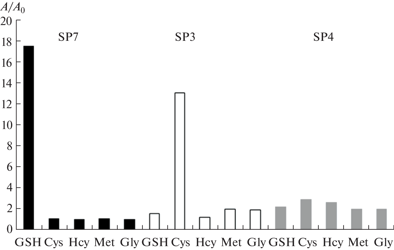 - Zhang Q., Ding S., Zhai Q., Feng G. Highly sensitive and selective detection of biothiols by a new low dose colorimetric and fluorescent probe // RSC Adv. 2015. V. 5. № 77. P. 62325.