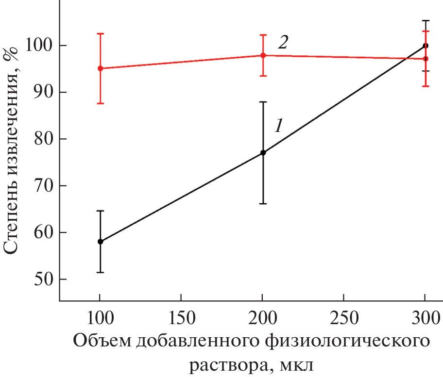 A procedure is proposed for the extraction of 2,6-diisobornyl-4-methylphenol (IBP), the molecule with potential multi-target activity, and its active metabolite 2,6-diisobornyl-4-hydroxymethylphenol (IBP–OH) from human and rat plasma samples for further determination by liquid chromatography–tandem mass spectrometry. The solubility of IBP (in mg/mL) in various organic solvents is determined. In particular, the compound is readily soluble in chloroform (346 ± 14), methyl tert-butyl ether (98.6 ± 3.8), and ethyl acetate (96.8 ± 2.0). It is shown that the use of a mixture of chloroform and isopropanol (5 : 1, v/v) as an extraction system with simultaneous protein precipitation makes it possible to extract only 66 ± 10% of IBP, while the recovery of IBP–OH is 96 ± 7%. Pre-dilution of 200 µL of plasma with 300 µL saline increases IBP recovery to 100 ± 4%. Drying the extracts in a vacuum concentrator (air, 45°C) with the further reconstitution of the residues in 300 μL of acetonitrile facilitates the purification of biosamples and the preconcentration of analytes. The total sample preparation time does not exceed 70 min, and the duration of an analysis is 7 min, the injection volume is 2 µL. The procedure has been successfully tested on actual rat plasma samples after a single oral administration of IBP (10 mg/kg in oil) in the framework of pharmacokinetic studies.