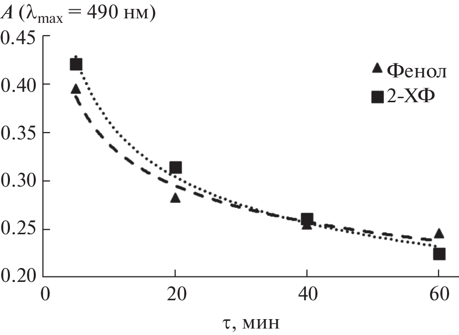 New test tools made of nanofibers based on polyamide-6 (PA-6) for the sorption preconcentration of some phenols as their azo derivatives followed by colorimetric determination are obtained. Approaches to the derivatization of phenol and chlorine derivatives by azo coupling with 4-nitrophenyldiazonium and oxidative condensation with 4-aminoantipyrine for improving the sorption characteristics of the studied phenols are proposed. The efficiency of the two derivatization methods is compared. The sorption kinetics of phenol and 2-chlorophenol derivatives and the effect of pH on the nature of their sorption are studied. The features of the sorption of phenol derivatives on nonwoven materials and the corresponding sorption isotherms are interpreted. Examples of the quantitative assessment of the concentration of phenols in aqueous media by the mathematical processing of digital images of the colored areas of test tools are presented. It is shown that the proposed methods can be used for the determination of phenol and 2-chlorophenol with the preconcentration of their derivatives on a PA-6 nanofiber in the range 0.2–1.0 μM (≈0.02–0.09 mg/L for phenol, ≈0.03–0.13 mg/L for 2-chlorophenol) with an error of colorimetric determination of no more than 20% (MAChshld phenol is 0.001 mg/L for the amount of volatile phenols in water bodies, provided that water is disinfected with chlorine; in other cases, the MAC is 0.1 mg/L).