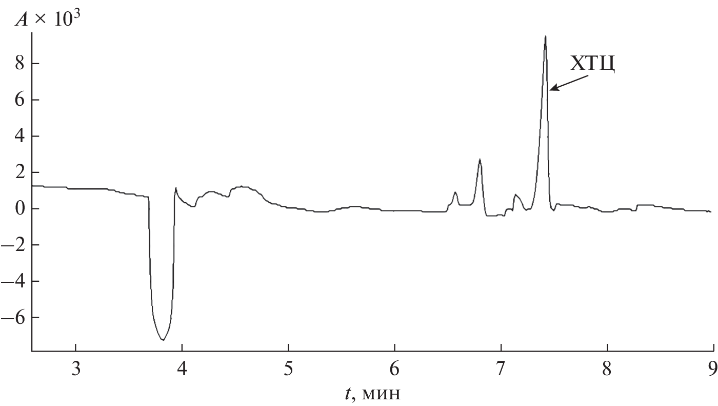 The work deals with the development of an approach to the determination of chlortetracycline, which combines the preconcentration of the analyte with its subsequent determination by capillary zone electrophoresis. The conditions that ensure the lowest value of the limit of determination for chlortetracycline in aqueous solutions using a Kapel-105M capillary electrophoresis system (Lumex, Russia) are determined, i.e., temperature, time and pressure of sample injection, background electrolyte composition, and detection wavelength. It is shown that the stability of a chlortetracycline solution is maximum at a storage temperature of 0.5°С in the absence of buffer systems or in using a dilute ammonium acetate buffer solution. It is found that the recovery of chlortetracycline by strongly acidic cation exchangers KU-1, KU-2 is higher compared to that by KB-4 and KB-4P2, bearing weakly acidic functional groups. The conditions under which the recovery of the analyte by KU-1 from a phosphate buffer solution is about 90% are determined.