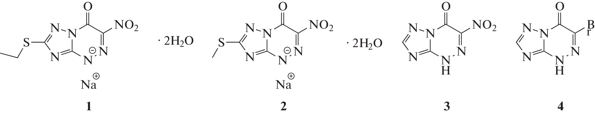 - Чупахин О.Н., Русинов В.Л., Уломский Е.Н., Чарушин В.Н., Медведева Н.Р., Киселев О.И., Деева Э.Г., Логинова С.Я., Борисевич С.В., Бондарев В.П. Натриевая соль 2-этилтио-6-нитро-1,2,4-триазоло[5,1-с]-1,2,4-триазин-7-она дигидрат. Патент РФ № RU 2404182 C2. Заявка 2008128824/04 от 14.07.2008, опубл. 21.01.2010.