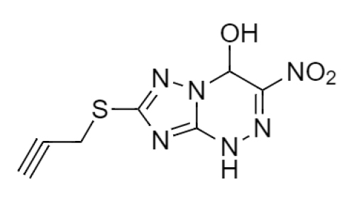 Схема 1. Структурная формула 2-пропаргилтио-6-нитро-7-гидрокси-4Н-1,2,4-триазоло-4,7-дигидро[5,1-с]-1,2,4-триазина