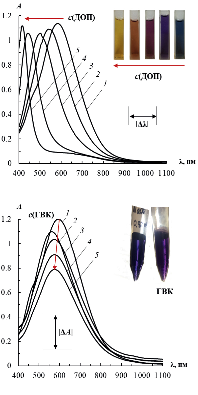 Определение веществ, вызывающих изменение геометрических параметров наночастиц. Значительное отличие оптических характеристик ТНП по сравнению, например, со сферическими наночастицами серебра связано с их нетривиальной морфологией. О наличии веществ, вызывающих ее изменение, можно судить по возникающим спектральным эффектам, как правило, сводящимся к значительным смещениям полосы ППР и соответствующей смене цвета раствора.