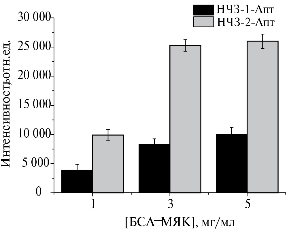 Синтез конъюгата бычий сывороточный альбумин–меркаптоянтарная кислота проводили по методике, описанной ранее [30]. Полученный конъюгат трехкратно очищали с помощью центрифужных концентраторов Amicon-30 (Merck Millipore, Ирландия) в течение 15 мин при 6 500×g с использованием фосфатного буферного раствора (10 мМ, рН 7.4).