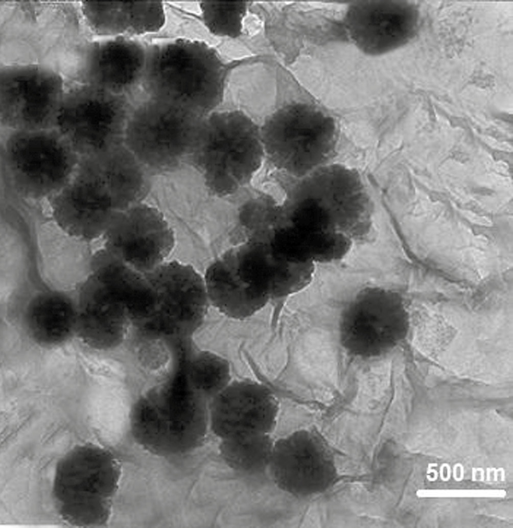 Рис. 4. Микрофотография композита BuMeImCO2-ОГ-СО-NH-Fe3O4.