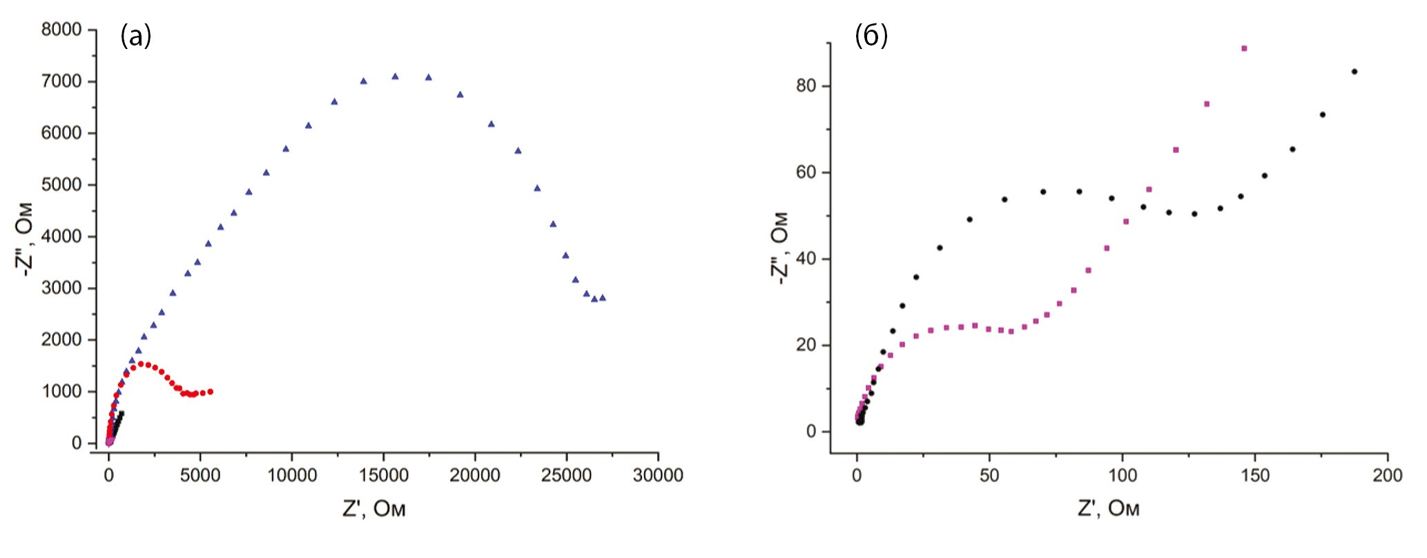 Импедиметрические измерения проводили с помощью потенциостата-гальваностата AUTOLAB PGSTAT 204N (Нидерланды) со встроенным модулем FRA32M. Спектроскопию электрохимического импеданса применяли для модельной системы, состоящей из 1 мМ смеси гексацианоферрата(II)/(III) калия х. ч. (Aldrich, Германия) в среде 0.1 М KCl х.ч. (Aldrich, Германия) в диапазоне частот от 100 кГц до 0.01 Гц с амплитудой 5 мВ при потенциале 0.24 В. Потенциал рассчитывали как полусумму потенциалов пиков окисления и восстановления редокс-пары [Fe(CN)6]3-/4-.