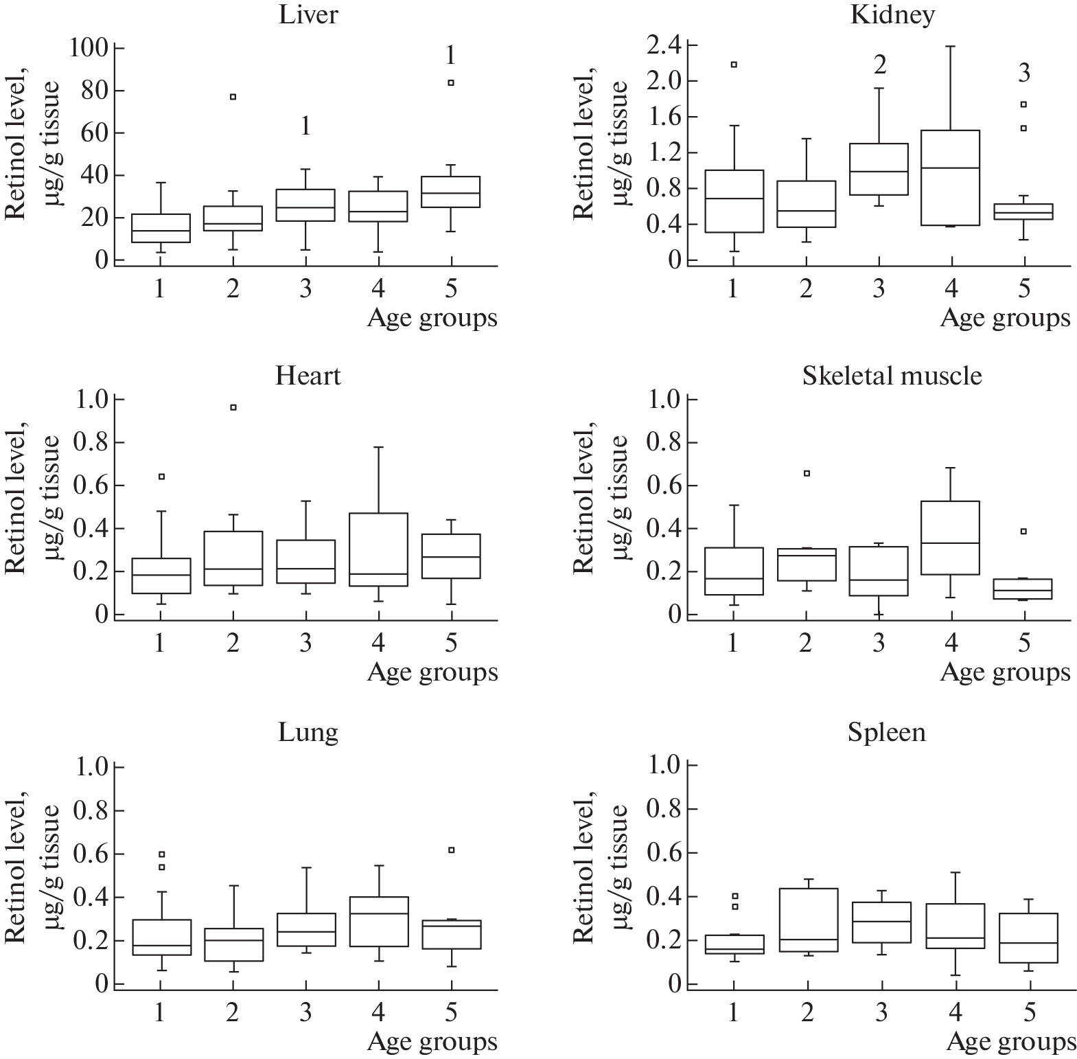 Phenotypic plasticity and resistance to climatic conditions allowed the wild boar (Sus scrofa L.) to expand its historical range, pushing its Northern border. In the processes of adaptation of animals to living on the periphery of the range in the conditions of the North, the status of vitamins A and E, which are natural antioxidants, and also perform a number of other biological functions in the body and are necessary for growth, reproduction and maintenance of immunity, is of great importance. The purpose of this study was to investigate the content of retinol, α-tocopherol, and the low-molecular-weight antioxidant glutathione (GSH) in the liver, kidney, heart, skeletal muscle, lung and spleen of wild boars (n = 65) aged 0.5 to 8 years, living in the Northwest of Russia. The results obtained indicate that the studied animals practically did not differ from the wild boars living in the сentre and south of Europe in terms of retinol availability, but were characterized by a lower level of α-tocopherol in the studied tissues, which is probably due to the limited food resources and harsh climatic conditions in the cold season in the North. The levels of vitamins and GSH in most tissues were comparable in piglets and adult animals. There was an accumulation of retinol and α-tocopherol in the liver and kidney, as well as α-tocopherol in the heart of wild boars with age, which is typical for other mammalian species. An increase in the level of GSH was found in the lung of animals over 5 years of age. The revealed vitamin status, which was formed in the wild boar in the conditions of the Northwest of Russia, and the peculiarities of the age dynamics of the studied indicators, may be one of the evidences of the successful adaptation of this species to inhabit in the Northern periphery of the range, which is confirmed by the growth of its population.