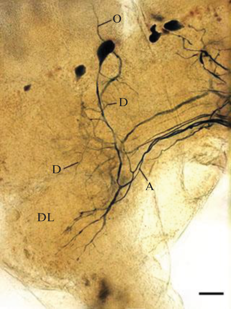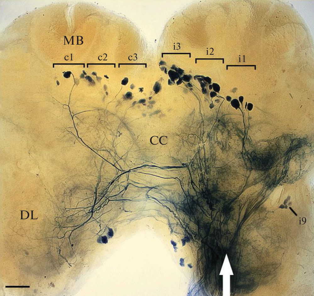 - Kononenko NL, Hartfil S, Willer J, Ferch J, Wolfenberg H, Pflüger HJ (2019) A population of descending tyraminergic/octopaminergic projection neurons of the insect deutocerebrum. J Comp Neurol 527 (6): 1027–1038. https://doi.org/10.1002/cne.24583