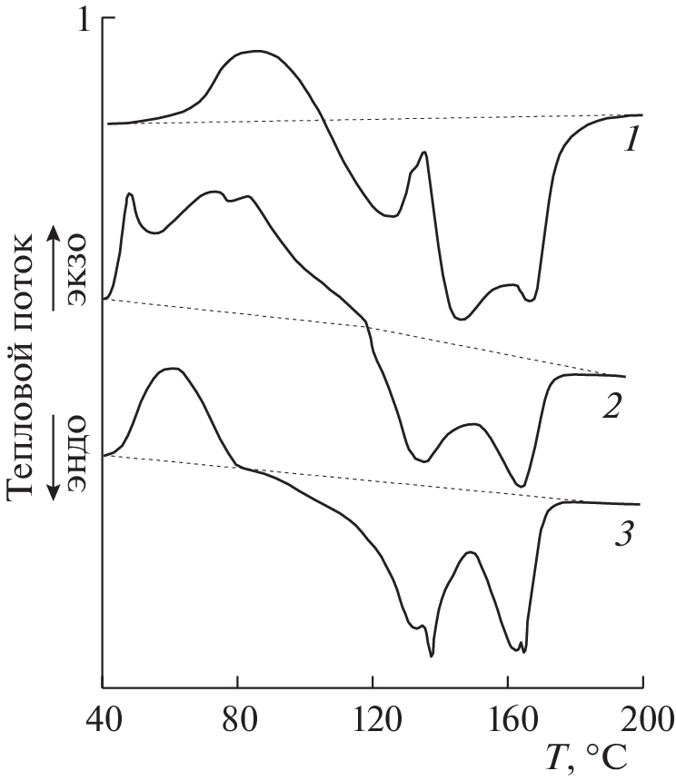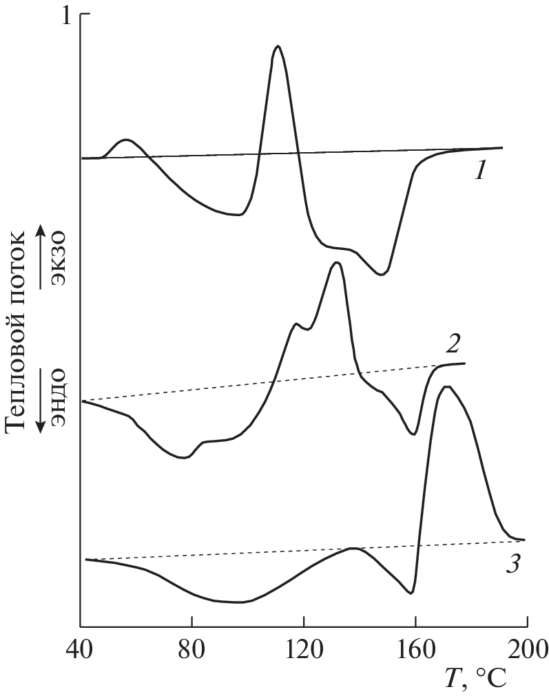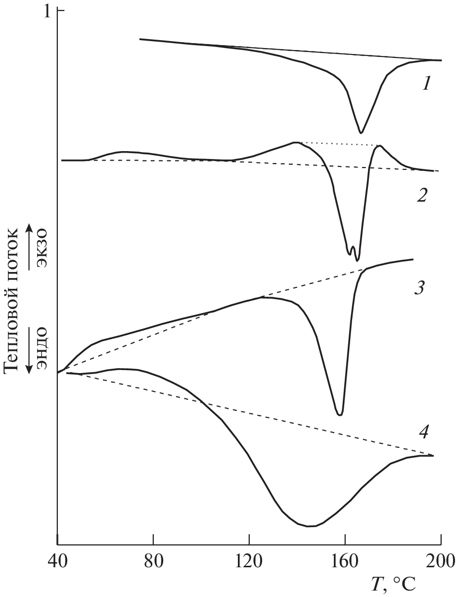 Mixtures of polypropylene (10 wt %) with anthracene, phthalocyanine, indigo, adamantane, congo red, spiropyran, safranin, methyl orange, bromocresol purple, phenolphthalein, fluorescein, phenol red, thymol blue, aspartic acid, cyanuric acid, thymolphthalein, and rhodamine were subjected to plastic deformation at a pressure of 1 GPa on an anvil-type high-pressure apparatus. It was found by DSC that the thermograms of heating of the deformed mixtures in the temperature range below Tm of the polymer contain endothermic peaks of melting of small polymer crystallites with enthalpies reaching 220–240 J/g in some samples, as well as exothermic peaks of cold crystallization with enthalpies reaching 430–470 J/g. The melting was described by bi- and trimodal peaks, whose total enthalpy reached 2200–2400 J/g in some mixtures. The polymer crystallization in the deformed mixtures was described by single exothermic peaks, whose enthalpies differed little from the crystallization enthalpy of the starting polypropylene. An increase in the enthalpies of thermal processes in the deformed mixtures was attributed to the appearance of double electric layers at interfaces between the mixed phases.