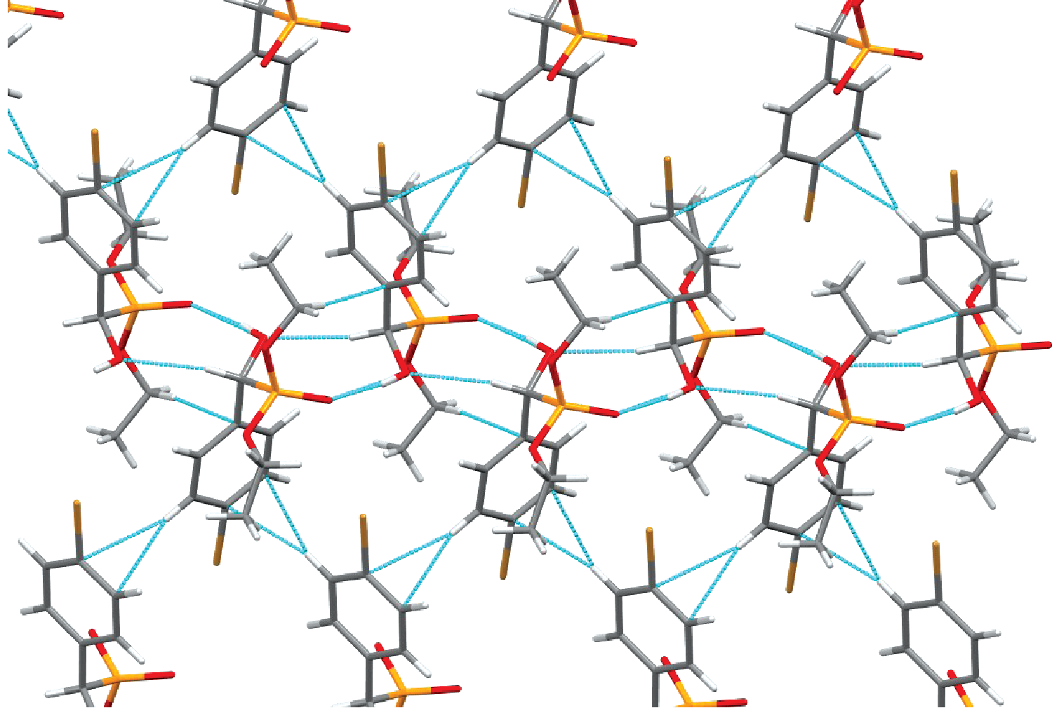 Two series of α-hydroxyphosphonate synthesis according to the Abramov reaction are conducted under conditions of microwave activation. Acidic and basic catalysts are used along with 4-bromobenzaldehyde and 3-methoxy-4-hydroxybenzaldehyde. O,O-Diethylphosphite is used as a phosphorylating agent. The conversion of the reaction products is monitored via NMR spectroscopy. The optimum conditions for the synthesis of α-hydroxyphosphonates are selected. The crystal structure of reaction product O,O‑diethyl((4-bromophenyl(hydroxy)methyl)phosphonate 2, which crystallizes in the space group P21/n and is stabilized by multiple C–H⋅⋅⋅O and C–H⋅⋅⋅π interactions, is described for the first time.