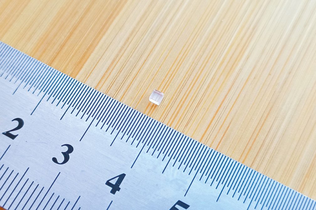 Теплоемкость Na2W2O7 была измерена релаксационным методом на комплексе автоматизированных измерений физических свойств материалов PPMS-9+Evercool II (Quantum Design, США) в Ресурсном центре «Центр диагностики функциональных материалов для медицины, фармакологии и наноэлектроники» Научного парка СПбГУ. Из выращенного монокристалла Na2W2O7 изготовлены образцы в форме прямоугольных параллелепипедов 2.0 x 2.0 мм высотой 1.0–1.5 мм (рис. 1). Масса исследуемого образца — 30.98 мг.