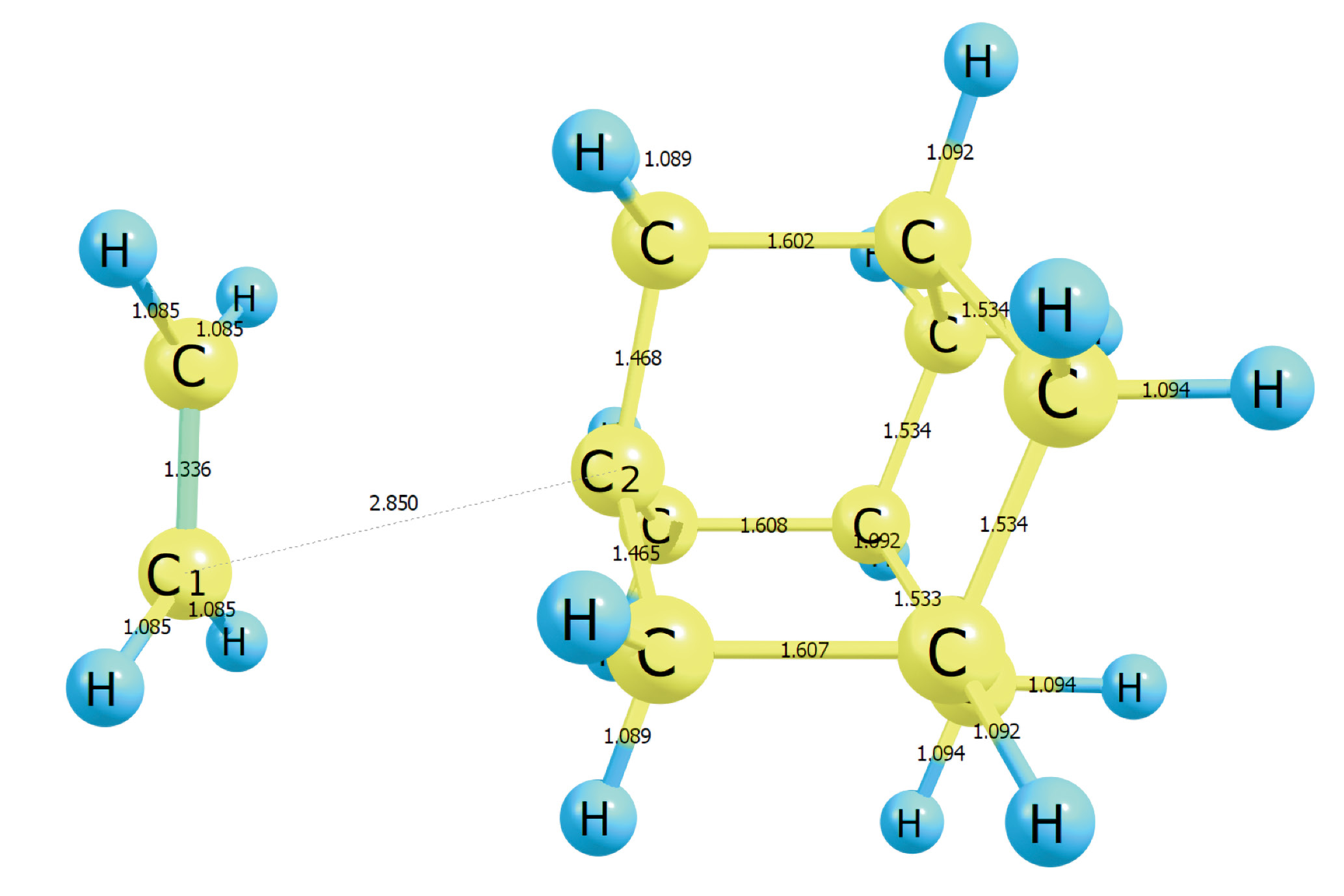 Таким образом, виниладамантан может образовываться в одну стадию из катиона Ad+ и этилена без рассчитанной энергии активации.