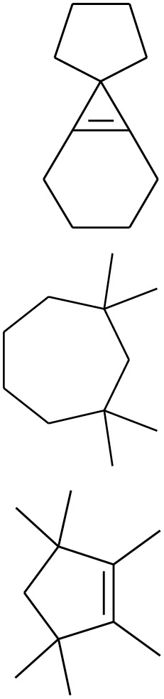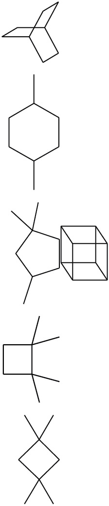 Наиболее характерным КЧ атомов кремния в комплексах SiSim является 4. На долю тетракоординированных атомов кремния приходится 193 комплекса SiSi4 из 223, что составляет 86.5% от изученной выборки. В SiSi4 центральные атомы кремния образуют КП в виде тетраэдра, собственная симметрия которого понижена до С3 (8 комплексов), С2 (8 комплексов) и С1 (177 комплексов). Величины валентных углов Si–Si–Si для тетракоординированных комплексов изменяются в диапазоне от 53.9 до 164.0°, что, как и в предыдущих примерах, обусловлено включением таких атомов в конденсированные, поли- и спироциклические системы (табл. 2). Гистограмма распределения валентных углов Si–Si–Si для комплексов SiSi4 представлена на рис. 1г.
