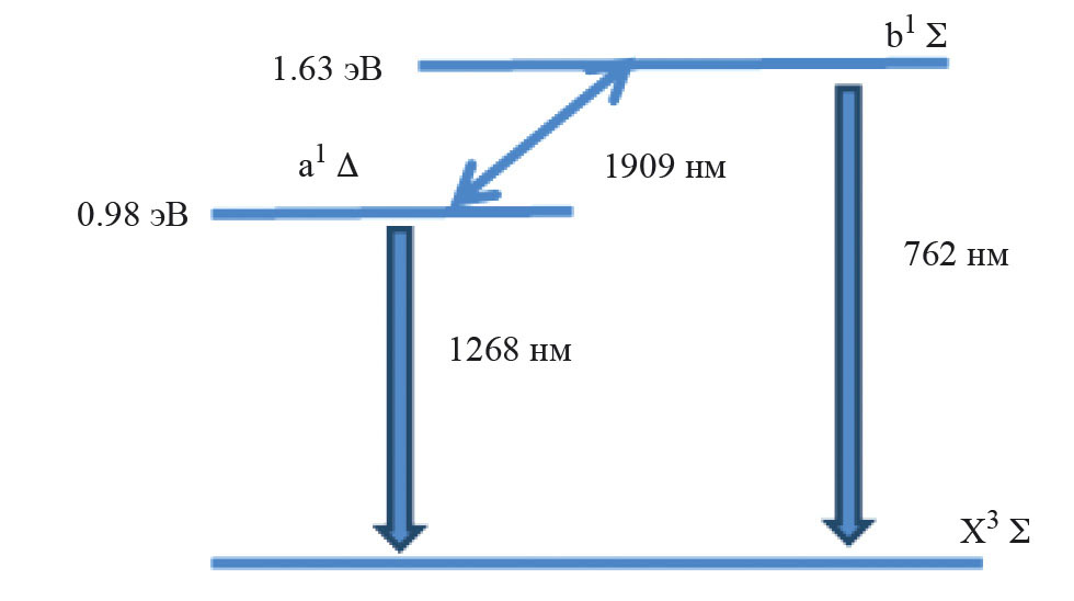 Молекула кислорода состоит из двух атомов, но в отличие от большинства других двухатомных гомоядерных молекул имеет ненулевой спин и, как следствие, ее основное состояние является триплетным. Синглетные состояния (a1Δ и b1Σ) являются возбужденными с энергиями 0.98 эВ и 1.63 эВ соответственно. Структура молекулярных термов молекулы кислорода приведена на рис. 1. Полоса перехода (a1Δ – b1Σ) содержит три ветви – P-, Q- и R-. Наиболее удобной для проведения измерений является Q-ветвь, поскольку переходы в этой ветви находятся близко друг к другу, и их длины волн изменяются последовательно с увеличением вращательного квантового числа. В работах [9, 10] были определены точные длины волн, соответствующие линиям перехода Q-ветви. Для этого использовались линии поглощения молекул воды, содержащиеся в окружающей атмосфере.