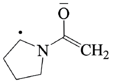 Анализ экспериментальных данных привел нас к выводу, что процессы в отрицательных ионах N-бензилоксикарбонил-глицил-L-пролина сходны с таковыми для ранее изученных нами олигопептидов и обусловлены свойствами пептидных и карбоксильной группировок. Эти процессы являются характеристичными, поскольку представляют основные направления фрагментации молекулярных ионов из любых пептидов. Для низкоэнергетической области характерны интенсивные процессы Н-сдвига в молекулярных ионах N-бензилоксикарбонил-глицил-L-пролина, и перегруппировочные ионы вносят основной вклад в полный ионный ток. Например, радикал-ион с m/z 155 образуется разрывом связи N–Cα и миграцией Н-атома СООН-группы к N-атому незаряженного фрагмента распада:
