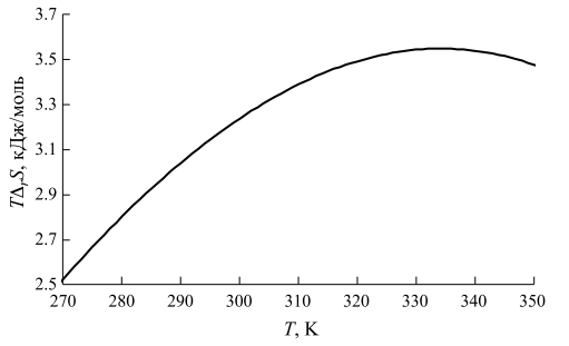 Ранее мы получили экспериментальные данные о тепловых эффектах реакции этерификации в этих системах при 313.13 K [22, 23]. Сравнение этих величин с литературными данными для других температур (табл. 1), на первый взгляд, приводит к противоречивому заключению: температурные изменения DrHT, для двух эфиров носят противоположный характер. Однако, эти изменения ненамного превышают обычные экспериментальные погрешности определения энтальпии реакции, ~0.3 кДж/моль [22]. Кроме того, отметим, что некоторые данные получены не вполне прямым способом. В частности, в работе 1958 года [25], выполненной в известной термохимической группе проф. Wadsö Лундского университета, исследовались процессы гидролиза эфиров: как известно скорость этой реакции мала в сравнении со скоростью этерификации, что также может приводить к существенным погрешностям.