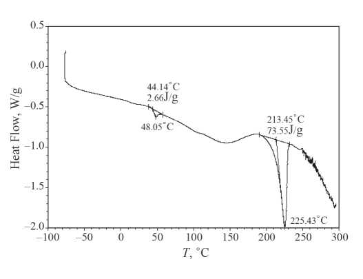 Измерения методом дифференциальной сканирующей калориметрии (DSC) проводились с использованием прибора DSC Q100, TA Instruments (США) в диапазоне температур от –100 до 300°C в атмосфере азота.