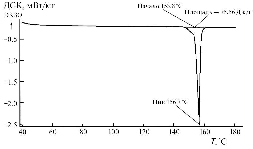 Рис. 4. ДСК-кривая трис(пентафторфенил)-2-пиридилэтилгермана.