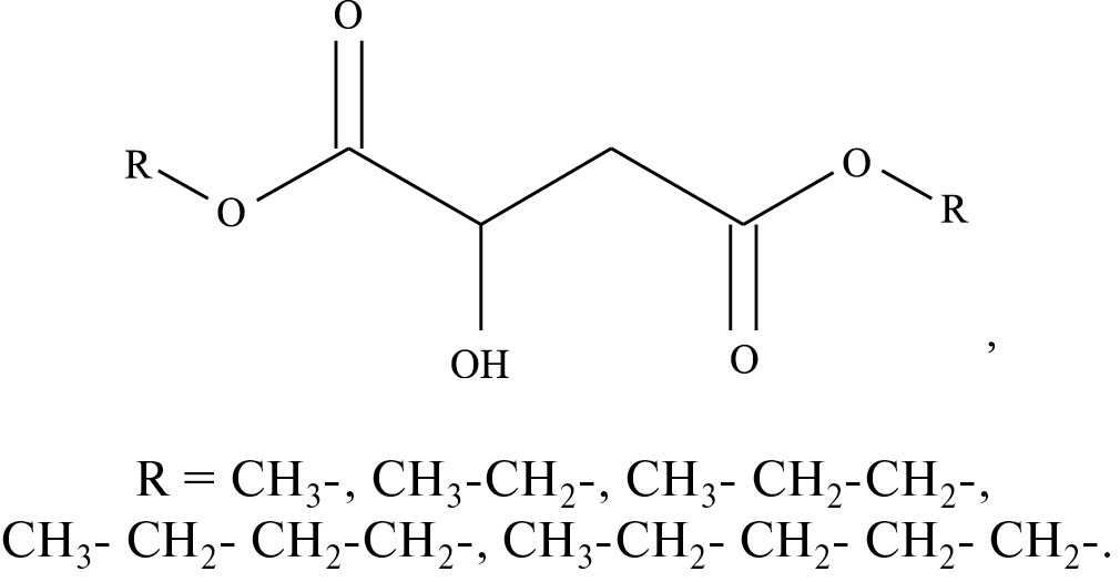 Образцы сложных эфиров были получены путем этерификации яблочной кислоты соответствующим спиртом. Методика синтеза описана в работе [24]. Были синтезированы эфиры следующей структуры (рис. 1).