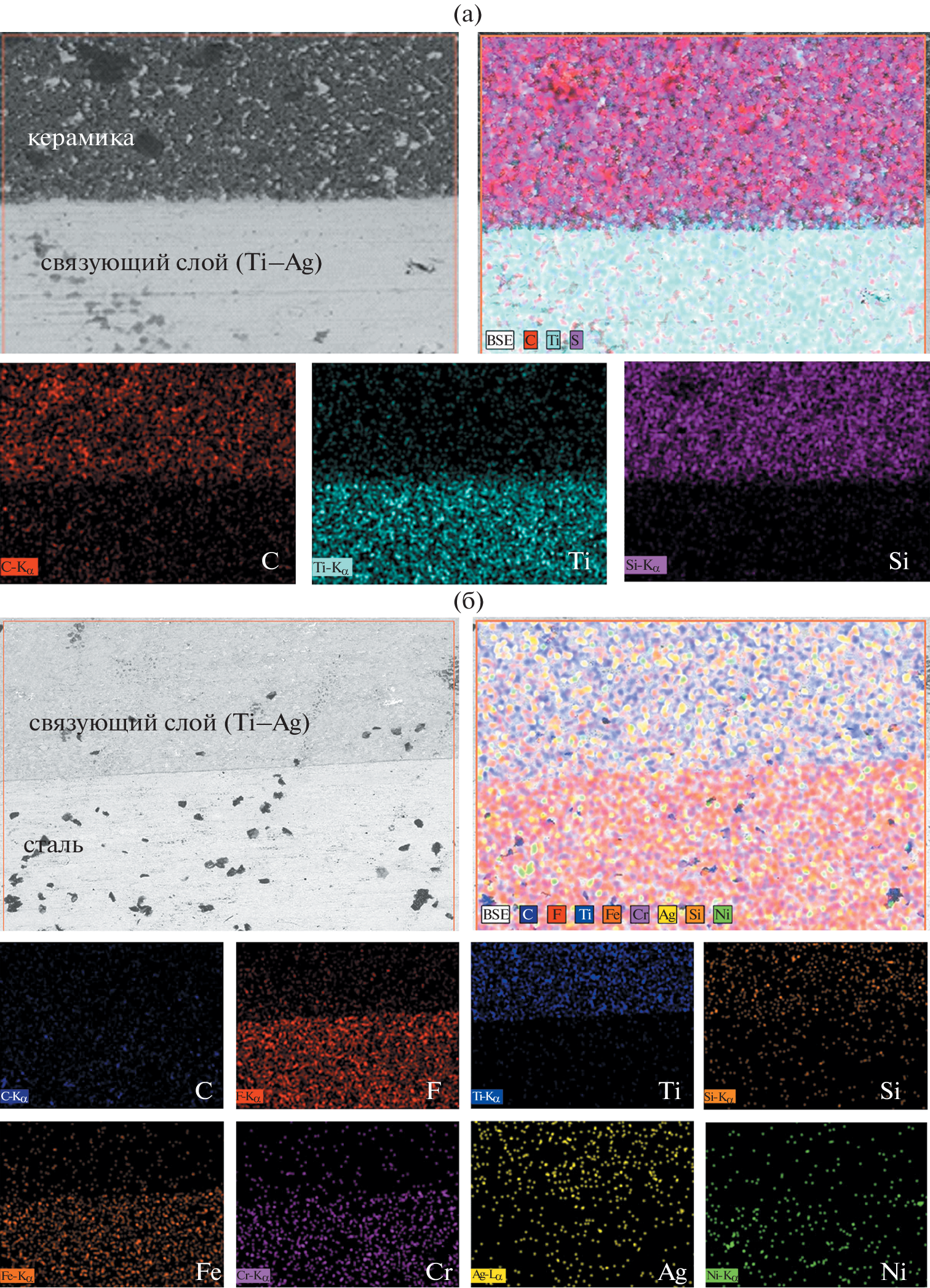 Важной научной задачей практического материаловедения является получение металлокерамических композитов в виде функционально-градиентных материалов (ФГМ) для изделий специального назначения. В этой связи в работе проведено исследование по применению технологии искрового плазменного спекания (ИПС) для эффективного диффузионного соединения SiC-керамики и высоколегированной стали (марка Х18Р15) с получением соединенного ФГМ-композита. В комплексном экспериментальном исследовании изучена динамика консолидации и изменение фазового состава дисперсного SiC в условиях различных температур и скорости разогрева, давления прессования, времени выдержки. В результате оптимизированы условия ИПС для получения SiC-керамики высокой относительной плотности (>82%) и микротвердости (>500 HV) стабильного фазового состава. Исследованы физико-химические основы формирования прочного соединения двухкомпонетной системы SiC-керамики и стали в условиях ИПС без добавок и с использованием смеси добавок в виде связующего, реакционного связующего и демпфера (системы добавок Ti–Ag, Ti–TiH2, Ti–Ag–TiH2 и Ti–Ag/Mo). Методами РФА, РЭМ и ЭДС изучена структура, состав керамики и промежуточных (связующих и демпферных) слоев, а также диффузия элементов на границе сформированных соединений в ФГМ-композитах. Установлено, что добавка Ti–Ag/Mo в соотношении 30 мас. % Ti–70 мас. % Ag и плотная прослойка Mo (толщина ~2 мм), выполняющего роль демпфера для компенсации температурного коэффициента линейного расширения, обеспечивают формирование соединенного ФГМ-композита целостной формы. Представленные исследования реализованы впервые, являются перспективными и требуют дальнейшего развития с целью наработки научных знаний изготовления композитных изделий специального назначения.
