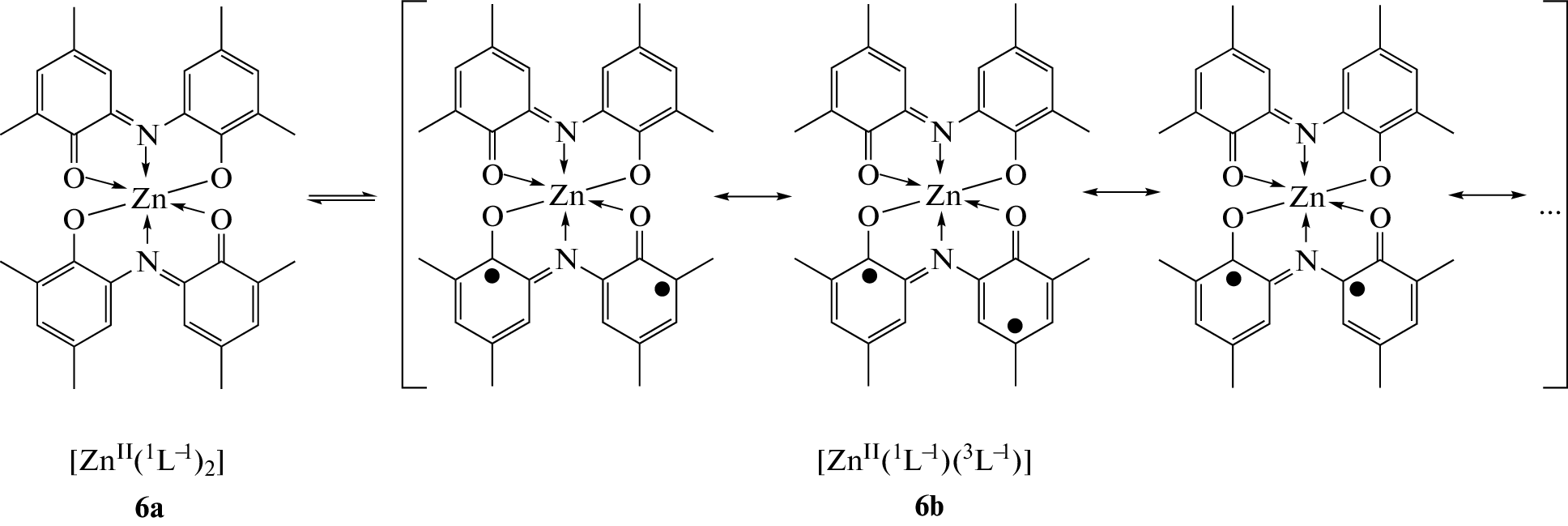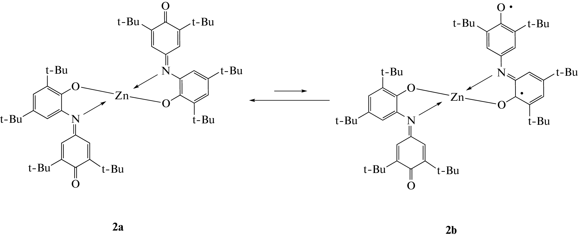 Zinc(II) complexes 2, 3, and 5 with redox-amphoteric o-indophenol ligands were prepared. The molecular structures of tetracoordinate complex 2 and hexacoordinate complex 3 were determined by single-crystal X-ray diffraction. The antioxidant properties of indophenols and their complexes were studied by cyclic voltammetry (CVA) and EPR spectroscopy. Complexation of indophenols increases the oxidation potentials by more than 0.84 V and leads to the formation of stable metal-containing radicals.