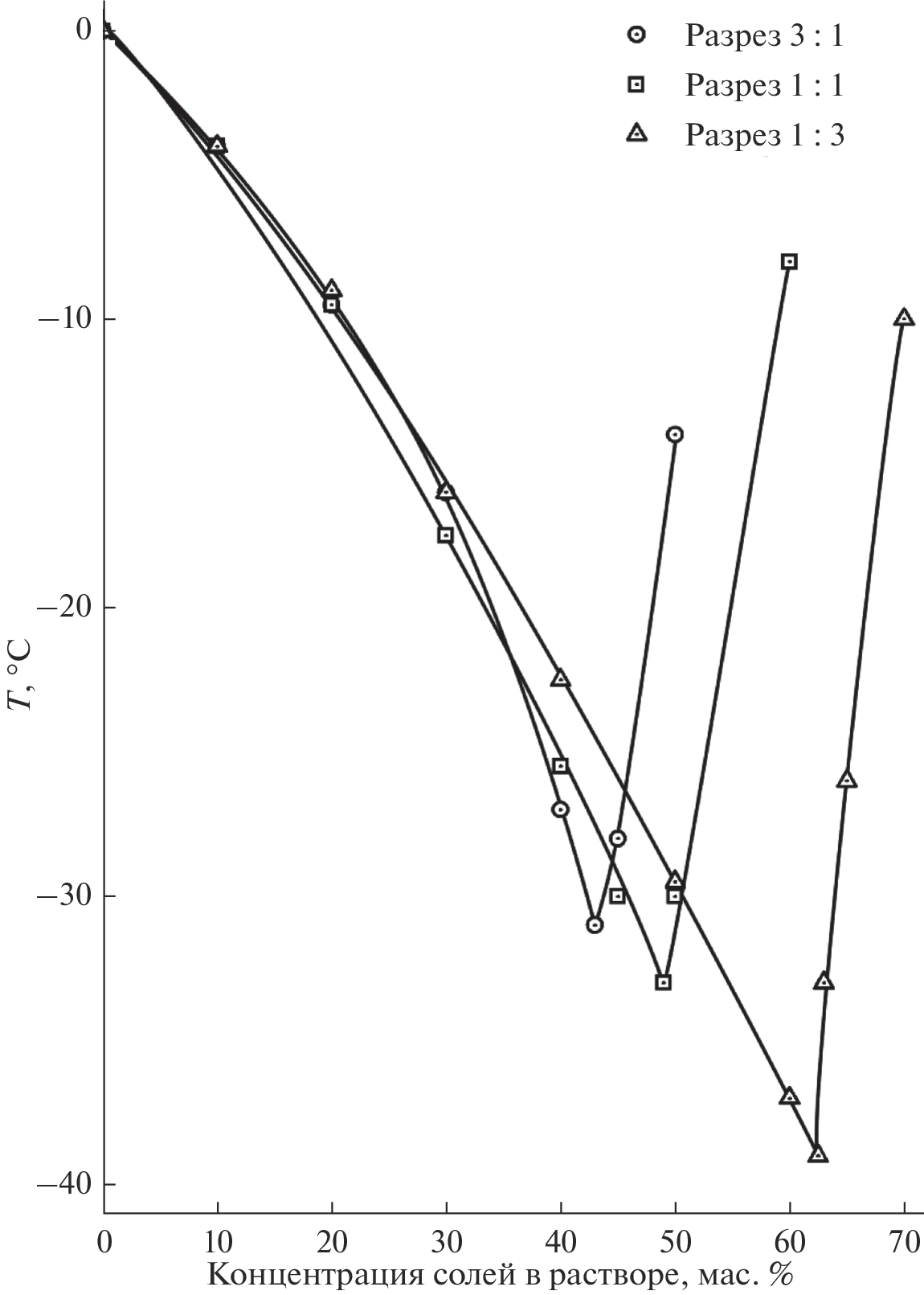 INVESTIGATION OF PHASE EQUILIBRIA IN SECTIONS OF THE CALCIUM NITRATE–ISOPROPANOL–WATER SYSTEM AT TEMPERATURES OF 0...-39°C