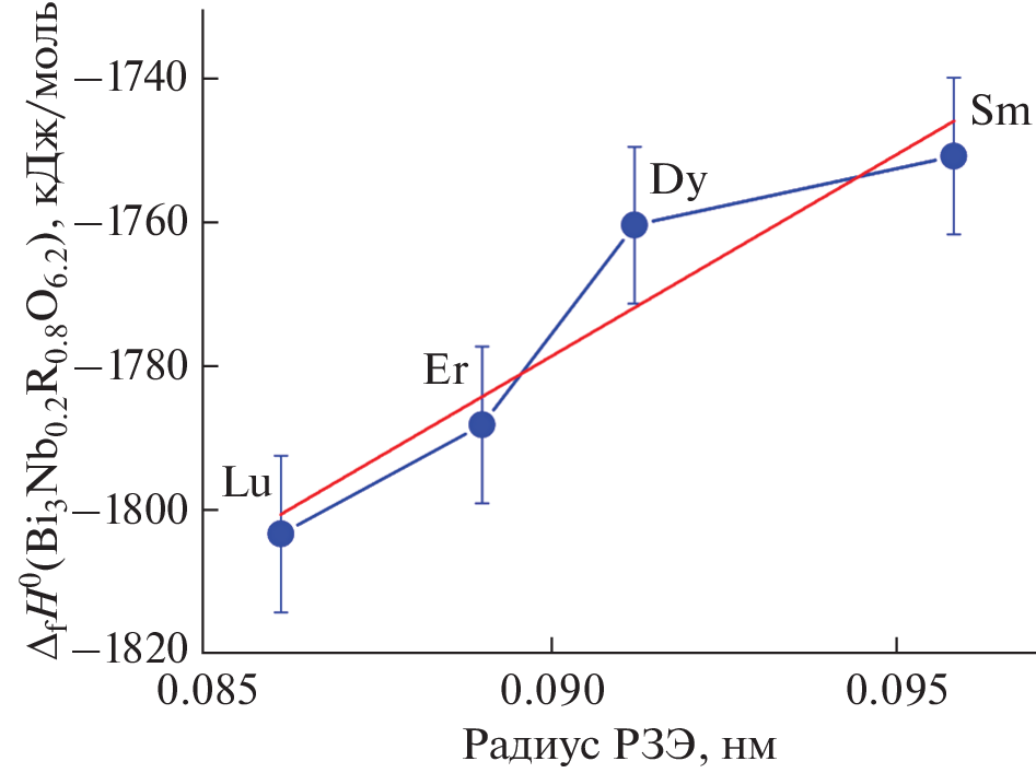 Synthesis methods, thermodynamic and functional properties of compounds based on bismuth niobates doped with rare-earth elements (REEs) are presented. These compounds are promising materials for fuel cells, ceramic oxygen generators, electrocatalysis, etc. As show the data generalized, most compounds have a cubic structure of the δ-form of bismuth oxide, which has the highest ionic conductivity among solid-state ionic conductors. The compounds have high lattice enthalpy and are therefore promising high-energy compounds. The review summarizes studies on the basic thermodynamic characteristics of bismuth niobates doped with rare earth elements. The change in standard enthalpies of formation, lattice enthalpies, and heat capacity when replacing one rare earth element with another is analyzed. It is shown that as the radius of rare earth elements decreases, the standard enthalpies of formation increases and lattice enthalpies increases. The change in ionic conductivity with changes in temperature and rare earth element content has been studied. It has been shown that with increasing temperature and REE content, conductivity increases.