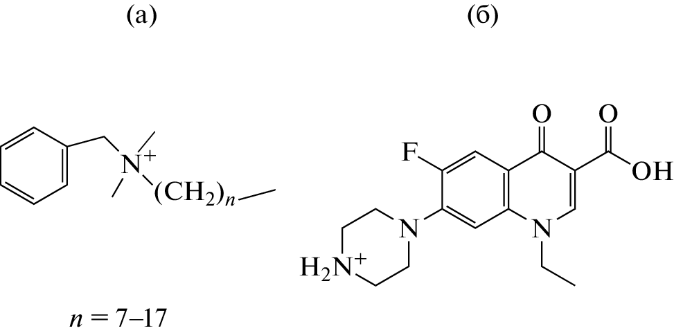 Ion selective electrodes (ISEs) based on polymer plasticized membranes have been developed for the determination of benzalkonium chloride (alkyldimethylbenzylammonium), the active component being cesium bis-octodecyl-2-sulfonio-closo-decaborate Cs[B10H9S(C18H37)2] (sensor A). For the determination of norfloxacin hydrochloride, the active component is potassium tris-octodecyl-1-ammonio-closo-decaborate K[B10H9N(C18H37)3] (sensor B). It has been shown that the electrodes have a reversible potentiometric response with respect to the analyzed cations in the presence of a number of other inorganic and organic cations. The influence of the concentration of the electrode-active substance on the electrochemical characteristics of the manufactured sensor has been studied. The optimal composition of the ion-sensitive membrane has been found. It has been determined that the developed sensors provide a wide range of detectable concentrations (for sensor A, 2 × 10–7–1 × 10–2; for sensor B, 1 × 10–7–1 × 10–2) and a low detection limit (for sensor A, 1 × 10–7 M; for sensor B, 8 × 10–8 M). New ISEs can be recommended for direct potentiometric detection of free ions in water bodies and water extracts of soils.