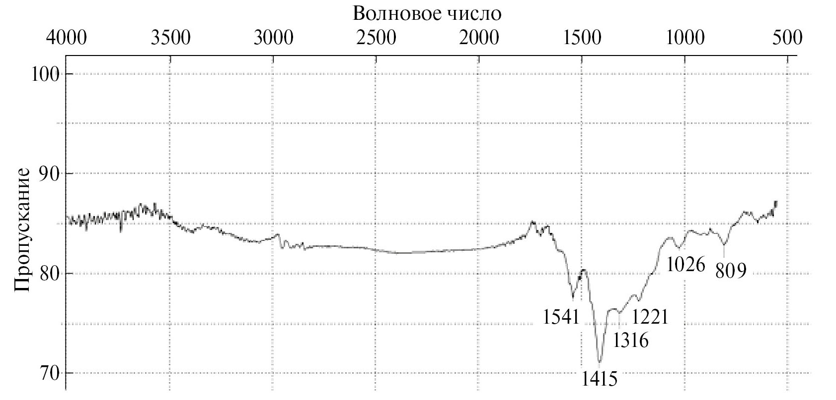 Рис. 2. ИК-спектр сульфида цинка, таблетка KBr.