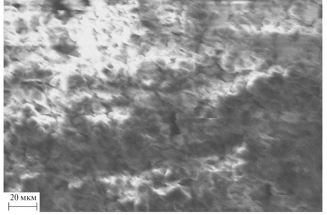 Электронные фотографии порошков ZnS и ZnS–Mn приведены на рис. 3, 4. Порошок сульфида цинка состоит из зерен размером до 8 мкм искаженной кубической формы с достаточно однородным распределением по размерам (рис. 3). На поверхности частиц наблюдается незначительный слой структурно неоформившегося вещества.