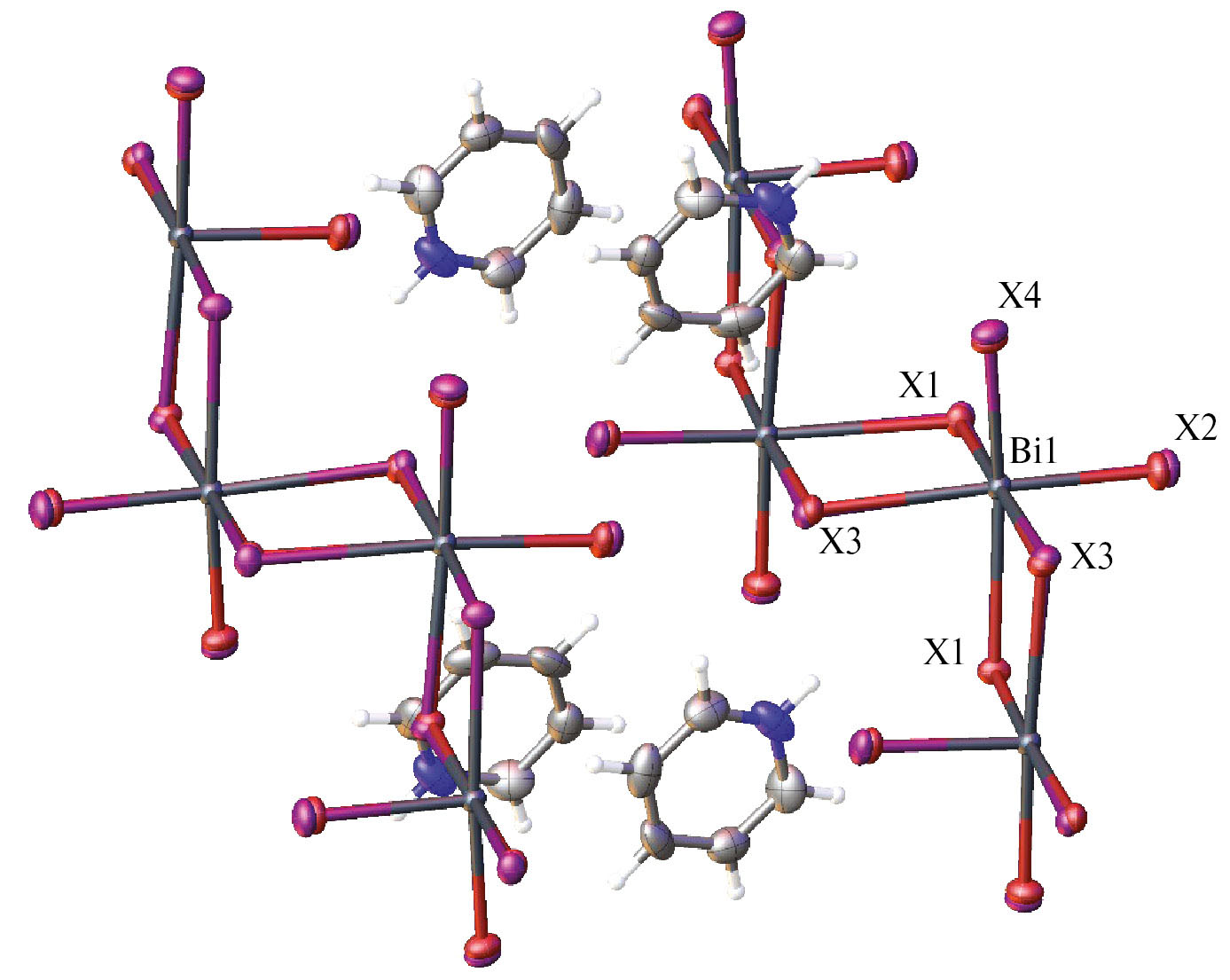 Рентгеноструктурный анализ (РСА). Экспериментальные данные для соединений I–V собраны на дифрактометре Bruker D8 Venture (λ(MoKα), графитовый монохроматор) [20]. Поглощение учтено полуэмпирическим методом по эквивалентам в программе SADABS [21] или TWINABS [22]. Структуры определены комбинацией прямого метода и синтезов Фурье. Величины заселенностей разупорядоченных атомов галогена получены при анизотропном уточнении структур с фиксированными тепловыми параметрами разупорядоченных атомов. Структуры уточнены полноматричным анизотропным МНК. Атомы водорода рассчитаны из геометрических соображений. Все расчеты выполнены по программам SHELXS и SHELXL [23]. Длины связей Bi–X (X = Br, I) приведены в табл. S2.
