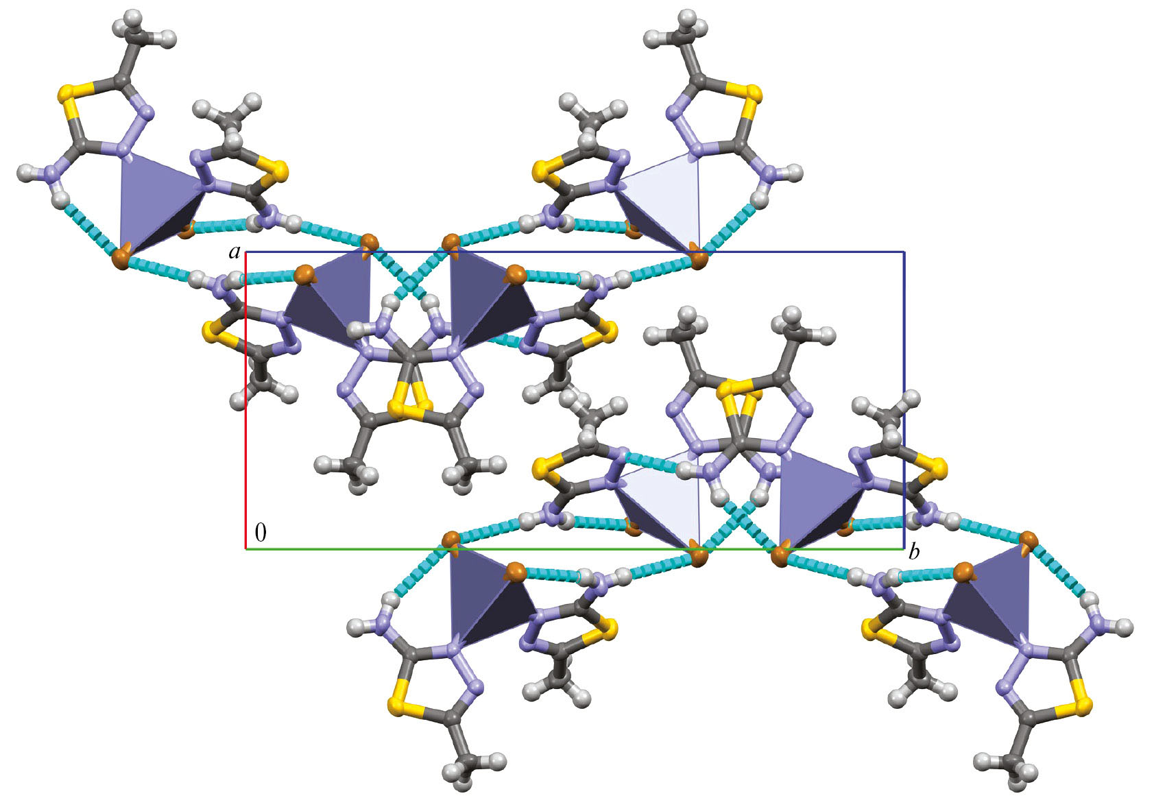 Нитрат цинка(II) образует с лигандами L1 и L2 пятикоординационное комплексное соединение. Увеличение координационного числа в этом случае, очевидно, объясняется бóльшим отталкиванием объемистых нитрат-ионов друг от друга, в результате появляется возможность для координации к центральному атому третьей молекулы гетероцикла. Образующийся комплекс нитрата цинка(II) с аминотиадиазолом представляет собой тригональную бипирамиду, в экваториальной плоскости которой находятся три атома азота трех молекул гетероцикла; аксиальные позиции полиэдра занимают атомы кислорода двух нитрат-ионов [33].
