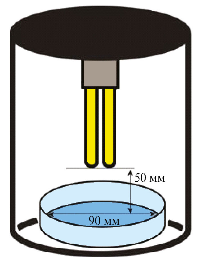 Для проведения фотокаталитического разложения к 20 мл водного раствора красителя (1.0 × 10–5–2.5 × 10–5 М) добавляли навеску NiFe2O4 /ZnO массой 50 мг, смесь выдерживали в темноте в течение 30 мин для установления равновесия абсорбции/десорбции красителя на поверхности катализатора. Фотокаталитическую реакцию проводили в реакторе (рис. 2), снабженном люминесцентной ультрафиолетовой лампой (ультрафиолет типа UV-C, длина волны 253.7 нм, мощность УФ-излучения 5 Вт). Степень деструкции (z) красителя определяли по формуле:
