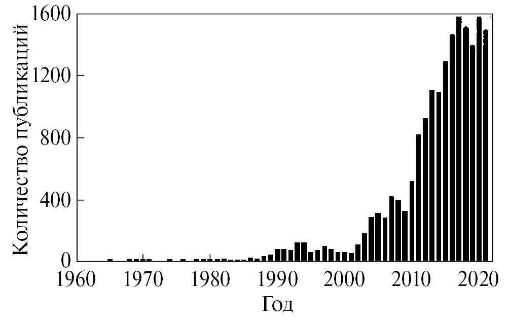 Рис. 1. Динамика научных публикаций в мировом научном сообществе по методу МН/АСО [11].1