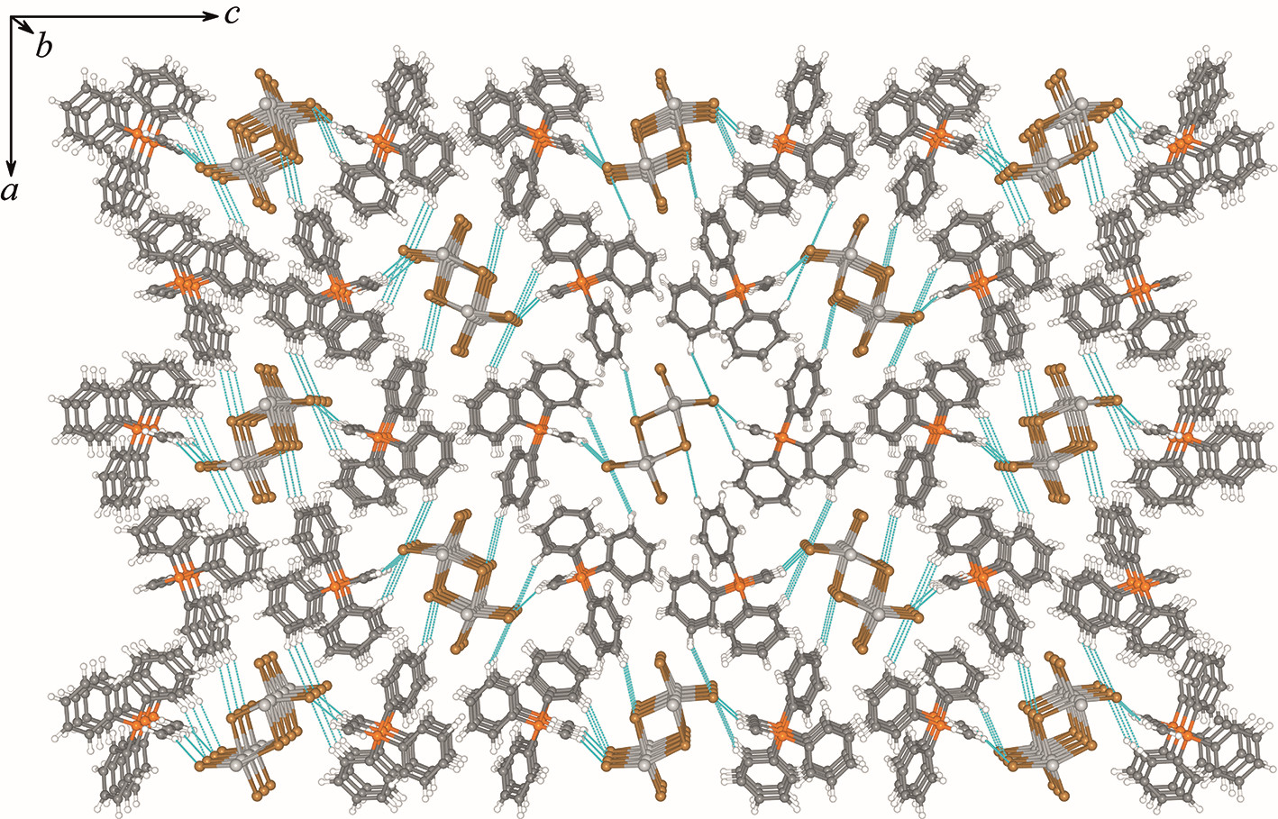 Кристаллическая организация комплексов I–III (рис. 4–6 соответственно) обусловливается контактами CAlk/Ph–H···Hal (Hal = Br (I, II), I (III)) длиной 2.94–3.04 (I), 2.92–2.93 (II) и 3.09 Å (III).