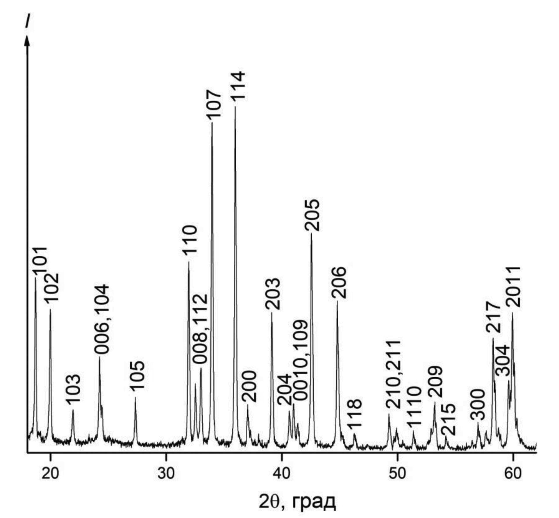 Рис. 1. Дифрактограмма образца LaMgAl11O19.