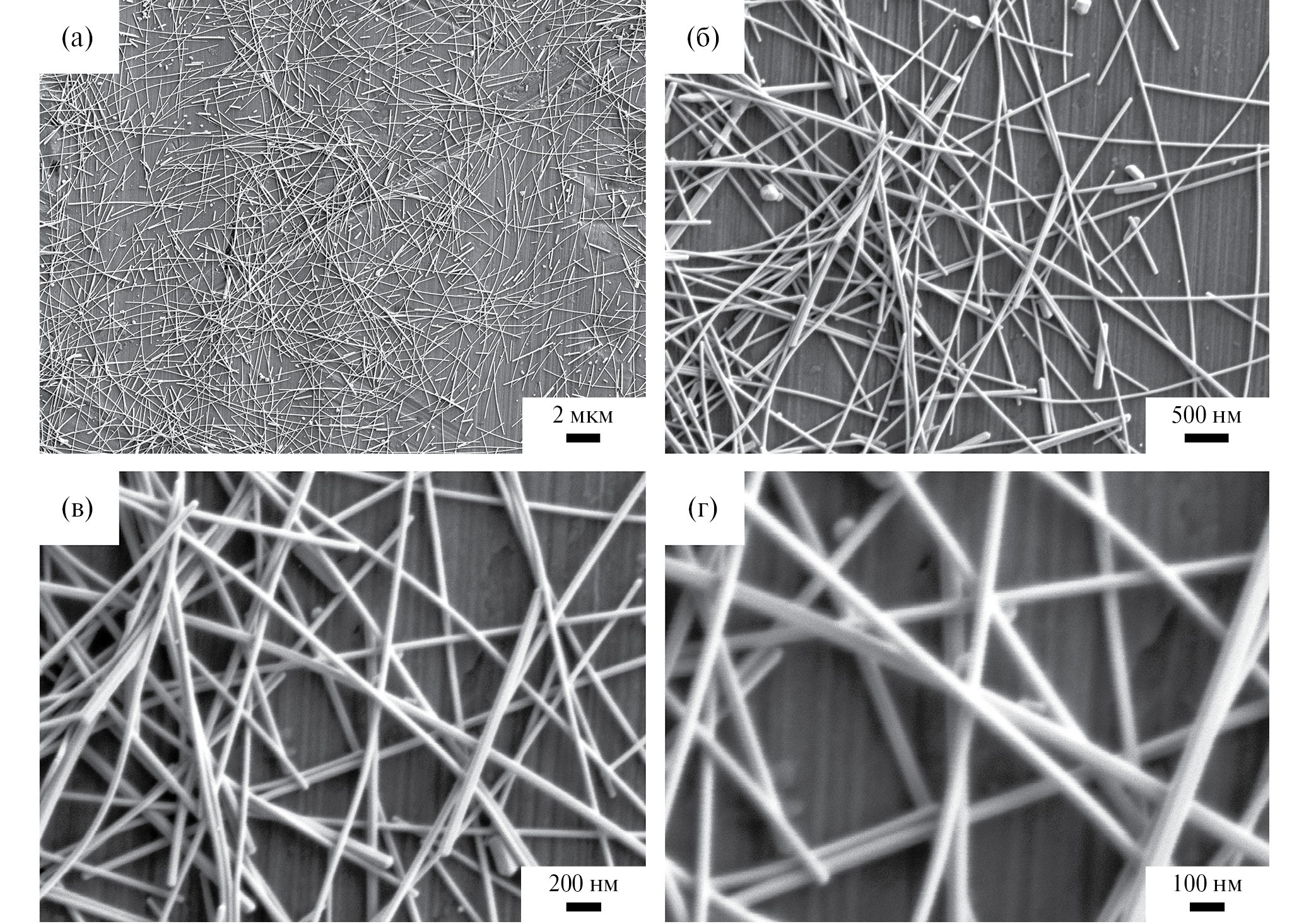 Рис. 2. Микроструктура полученных серебряных нанопроволок (по данным РЭМ)